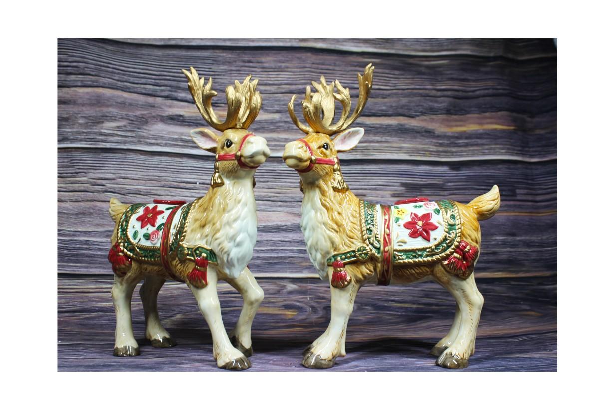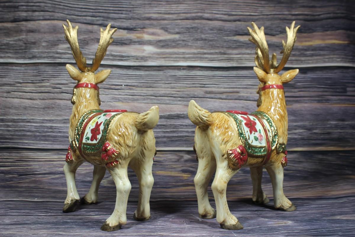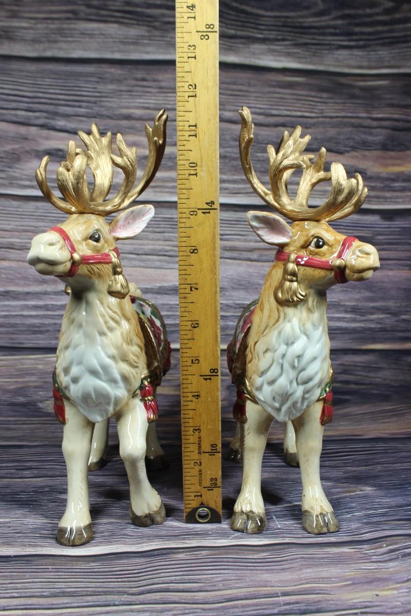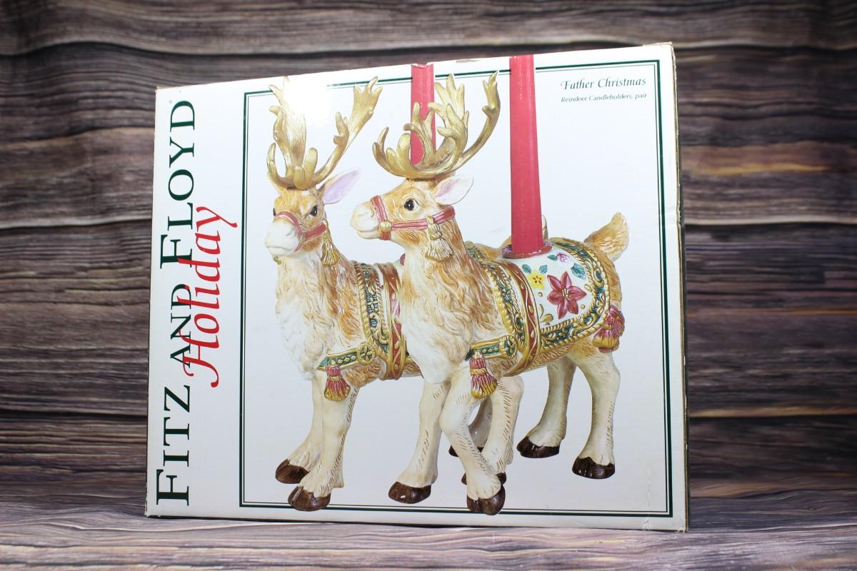 Vintage Pair of Fitz and Floyd Father Christmas Reindeer Candleholders Pair, there are no chips or cracks to either of the pieces and is like new. Comes with original packaging and box, check pictures for more detail and for sizing.