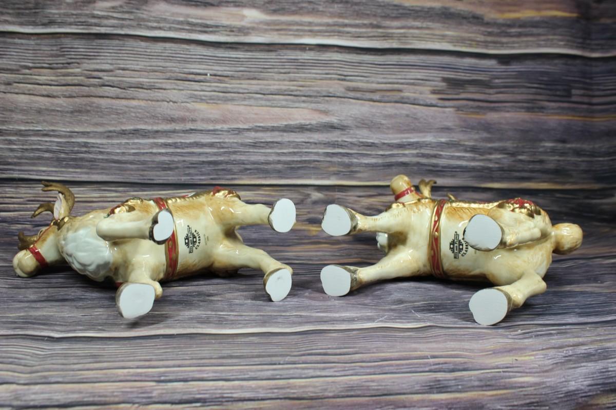 Vintage Pair of Fitz and Floyd Father Christmas Reindeer Candleholders Pair