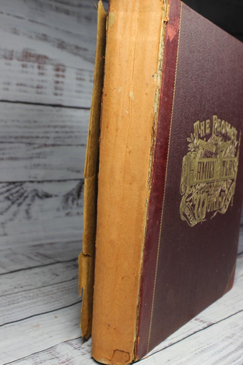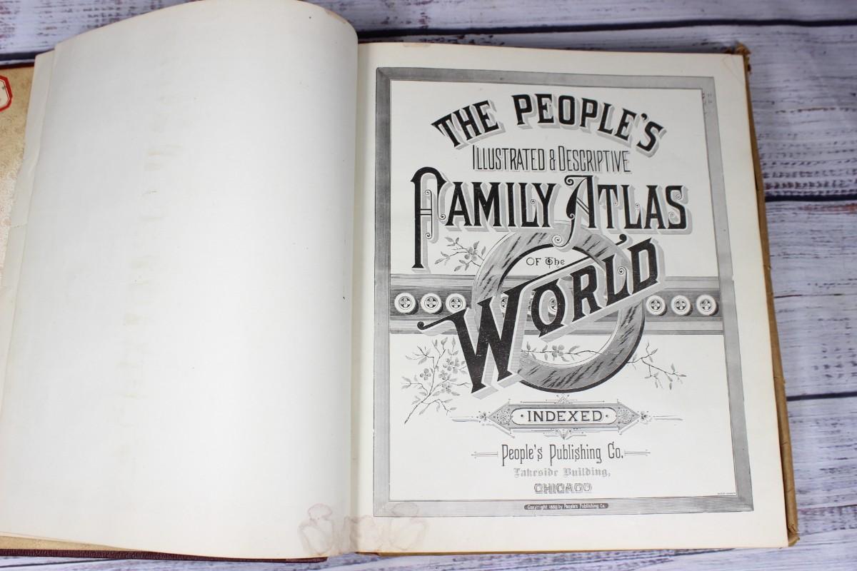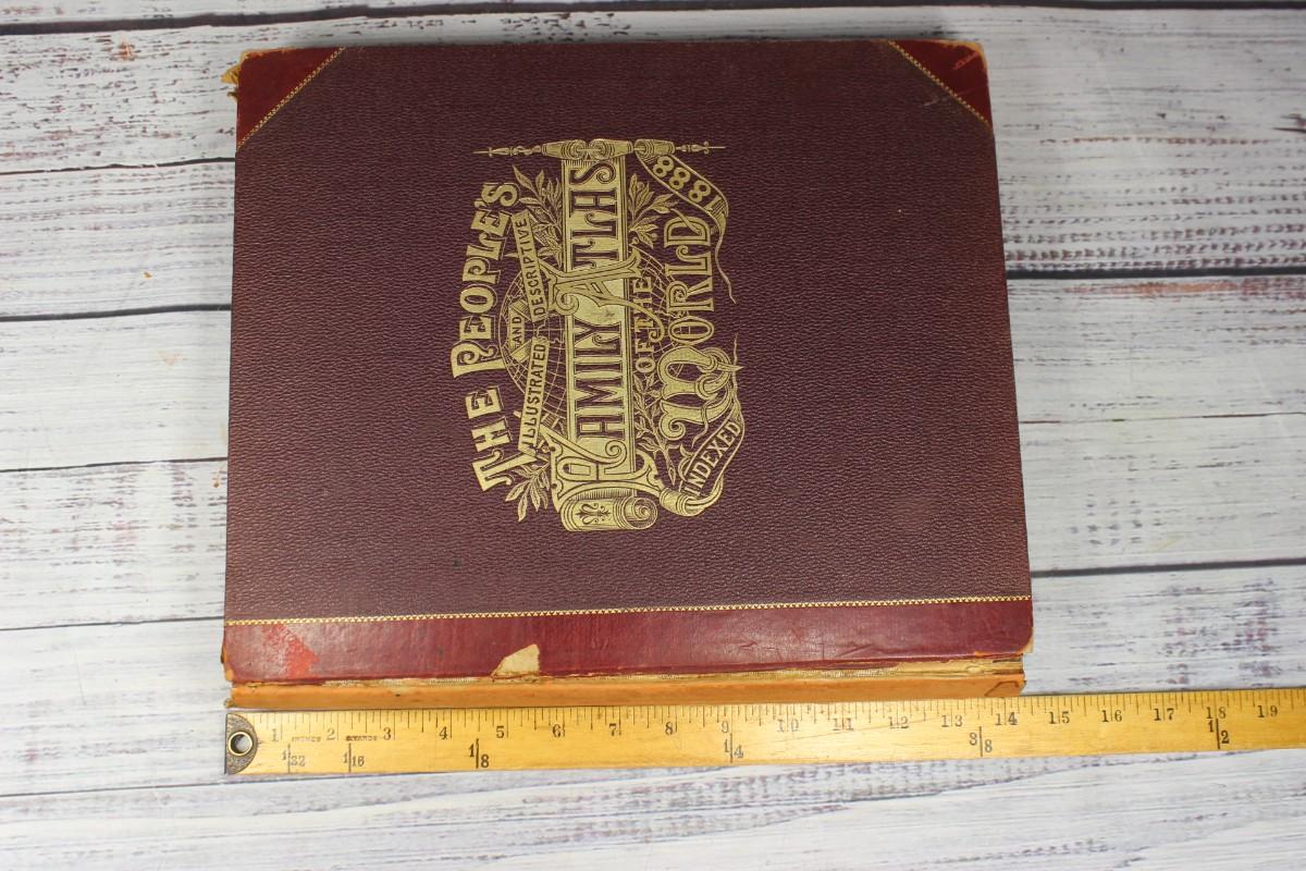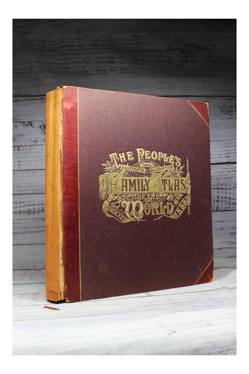 Antique Book The People's Illustrated & Descriptive Family Atlas of the World Indexed, there is some cosmetic wear to the book including the spine of the book check pictures for more details and for sizing. There are no significant rips or tears to the pages and is in overall fair vintage condition.