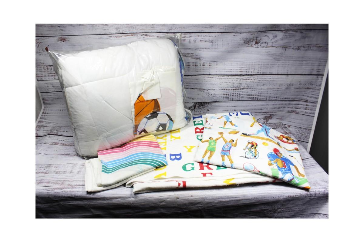 Retro Twin Size Child Youth Bed Sheet, Pillow Covers, Comforter Set Sports Alphabet