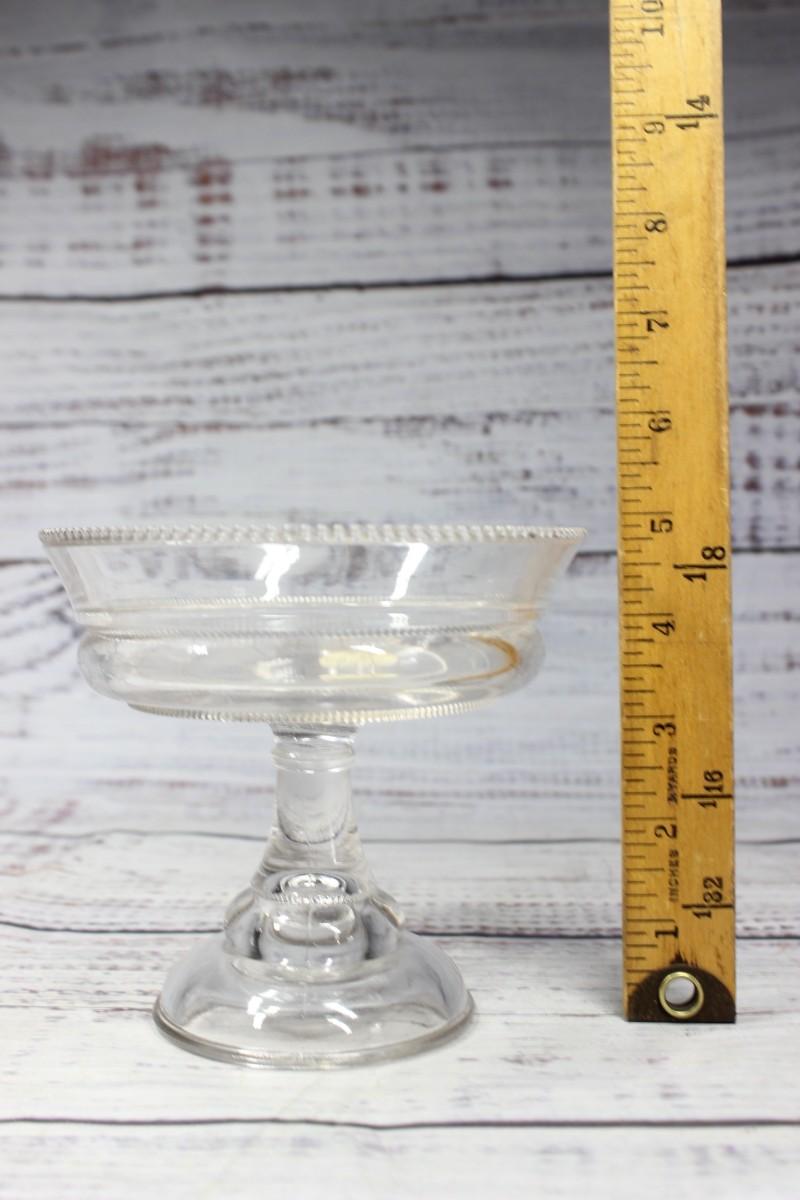 Vintage Clear Glass Dotted Rim Candy Dish Compote Pedestal Fruit Bowl