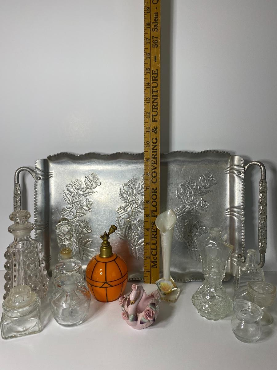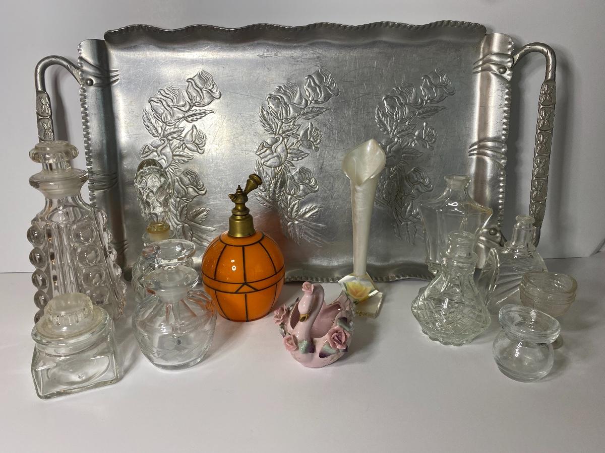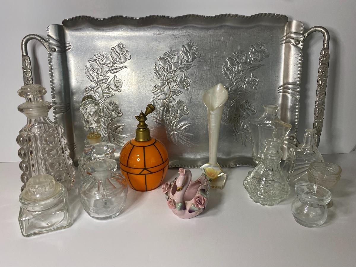 Lot 32: Lefton Swan, Perfume Bottles, Vanity tray and more