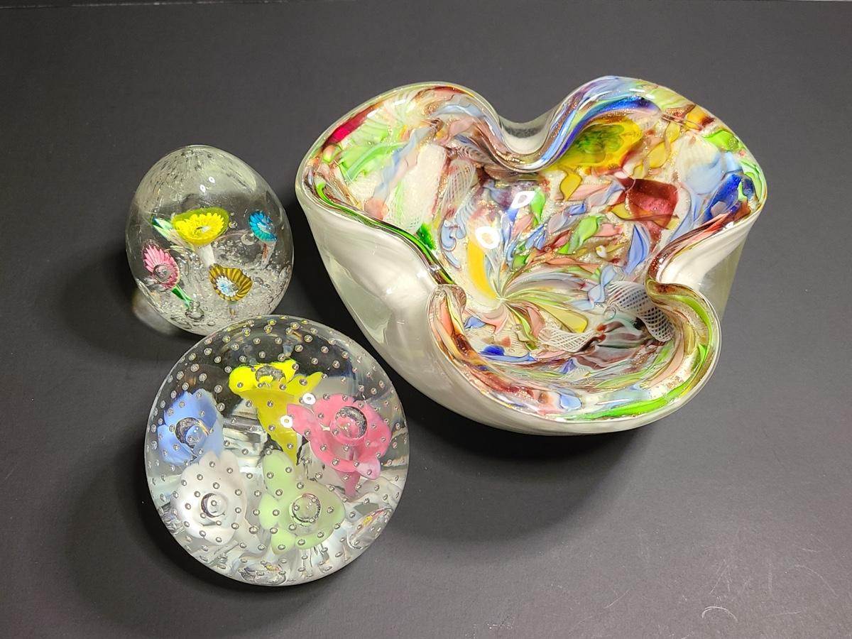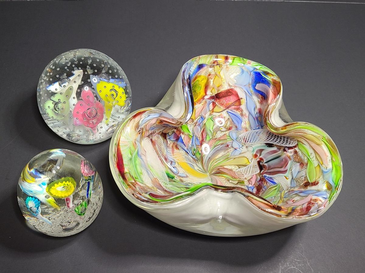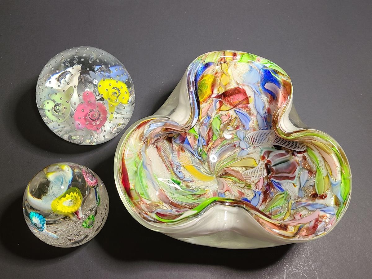 Lot 39: Vintage Paperweights and Art Glass Bowl.