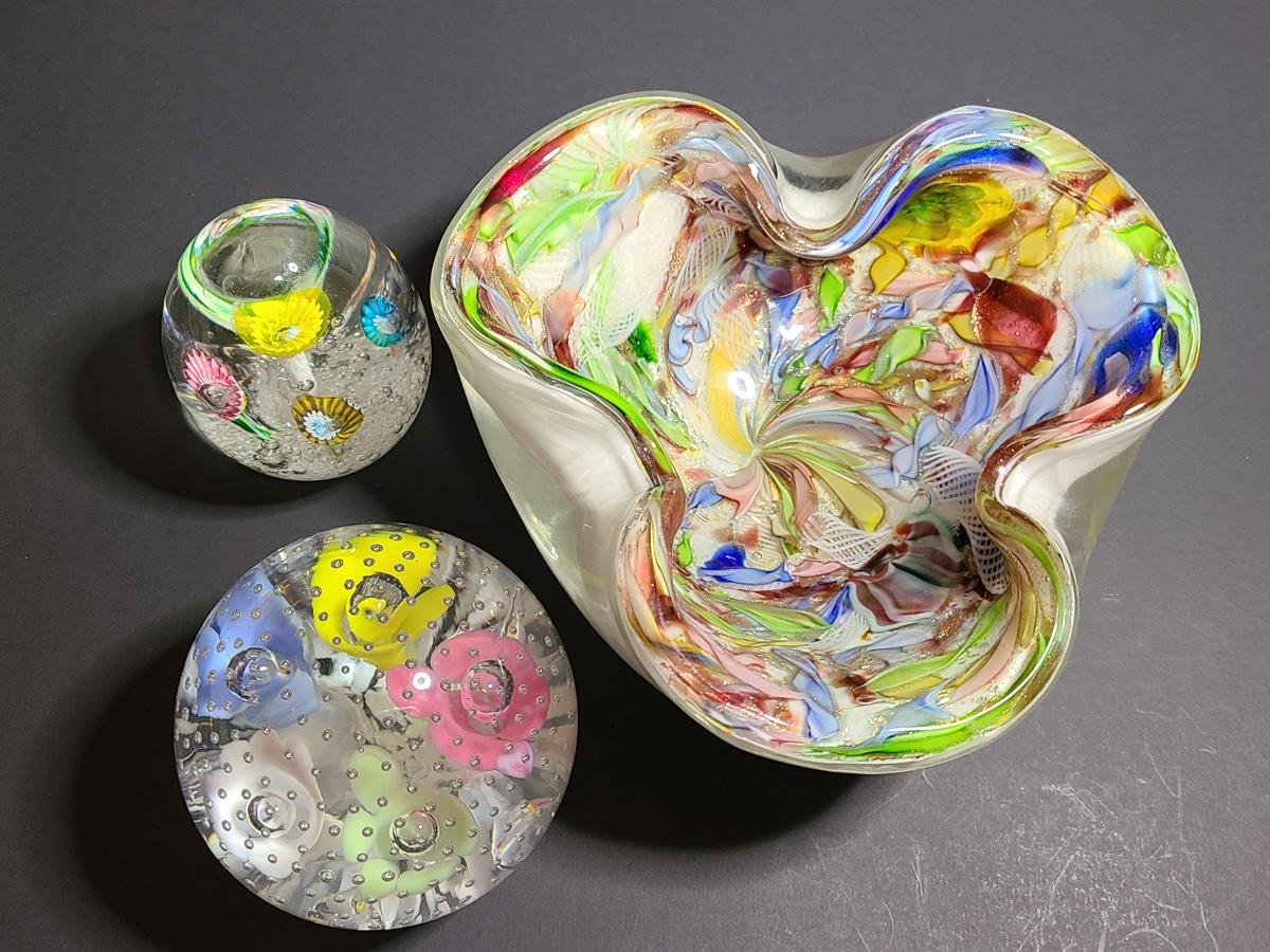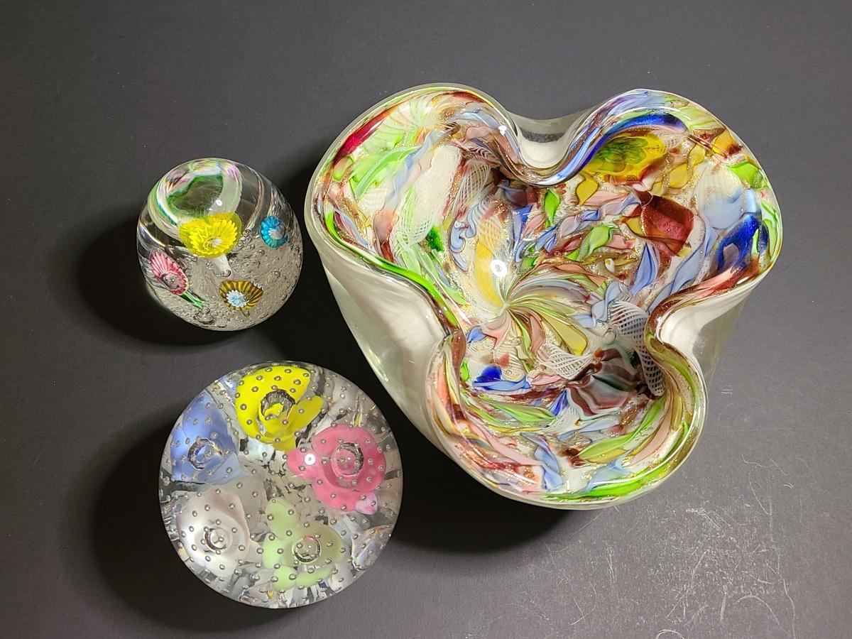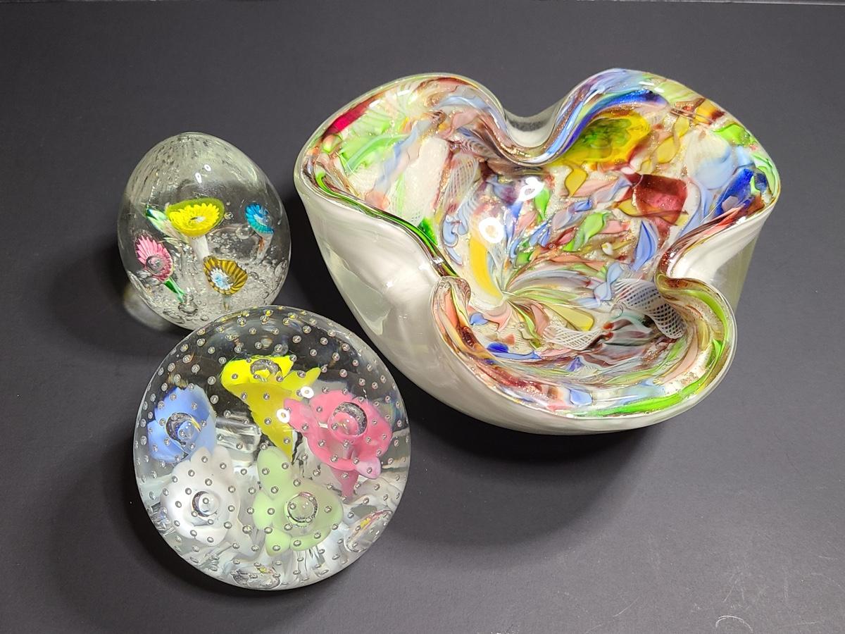 Lot 39: Vintage Paperweights and Art Glass Bowl.