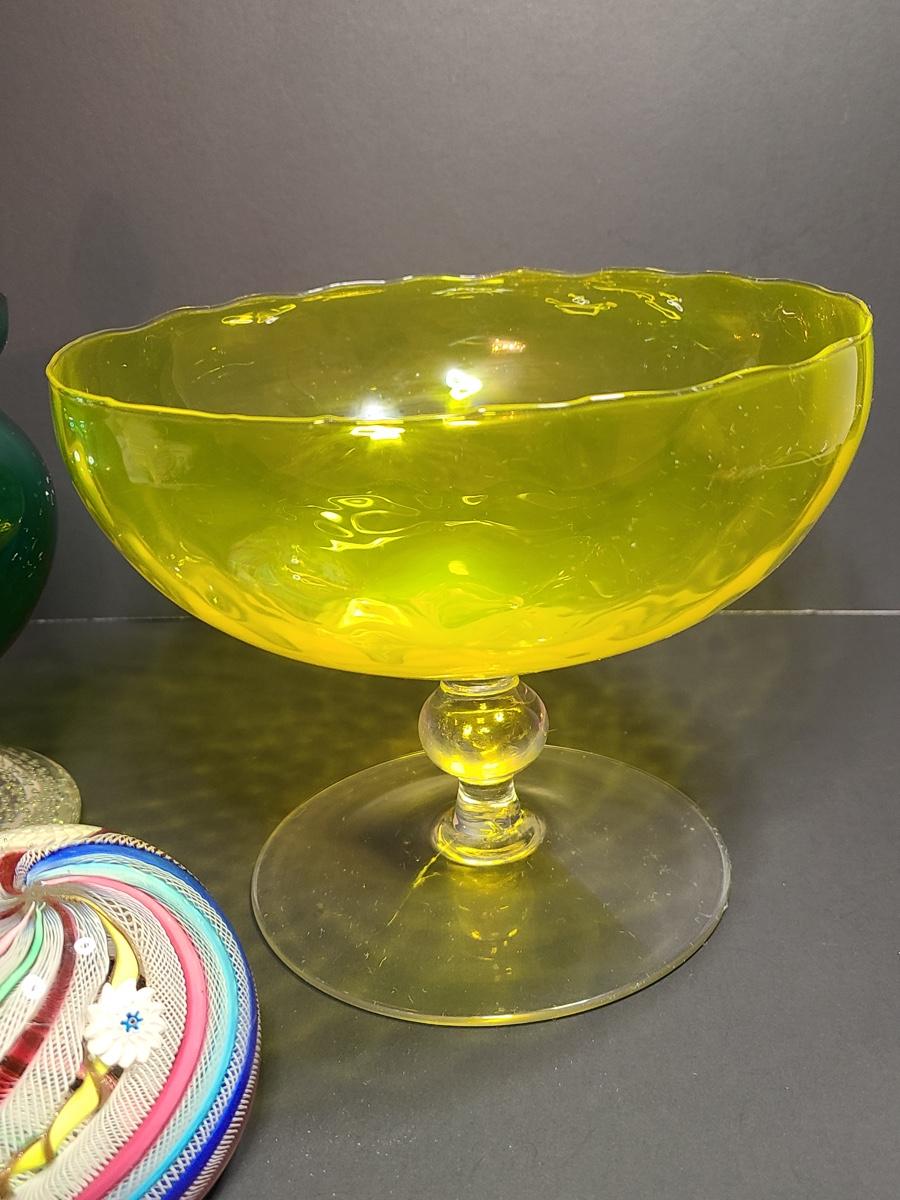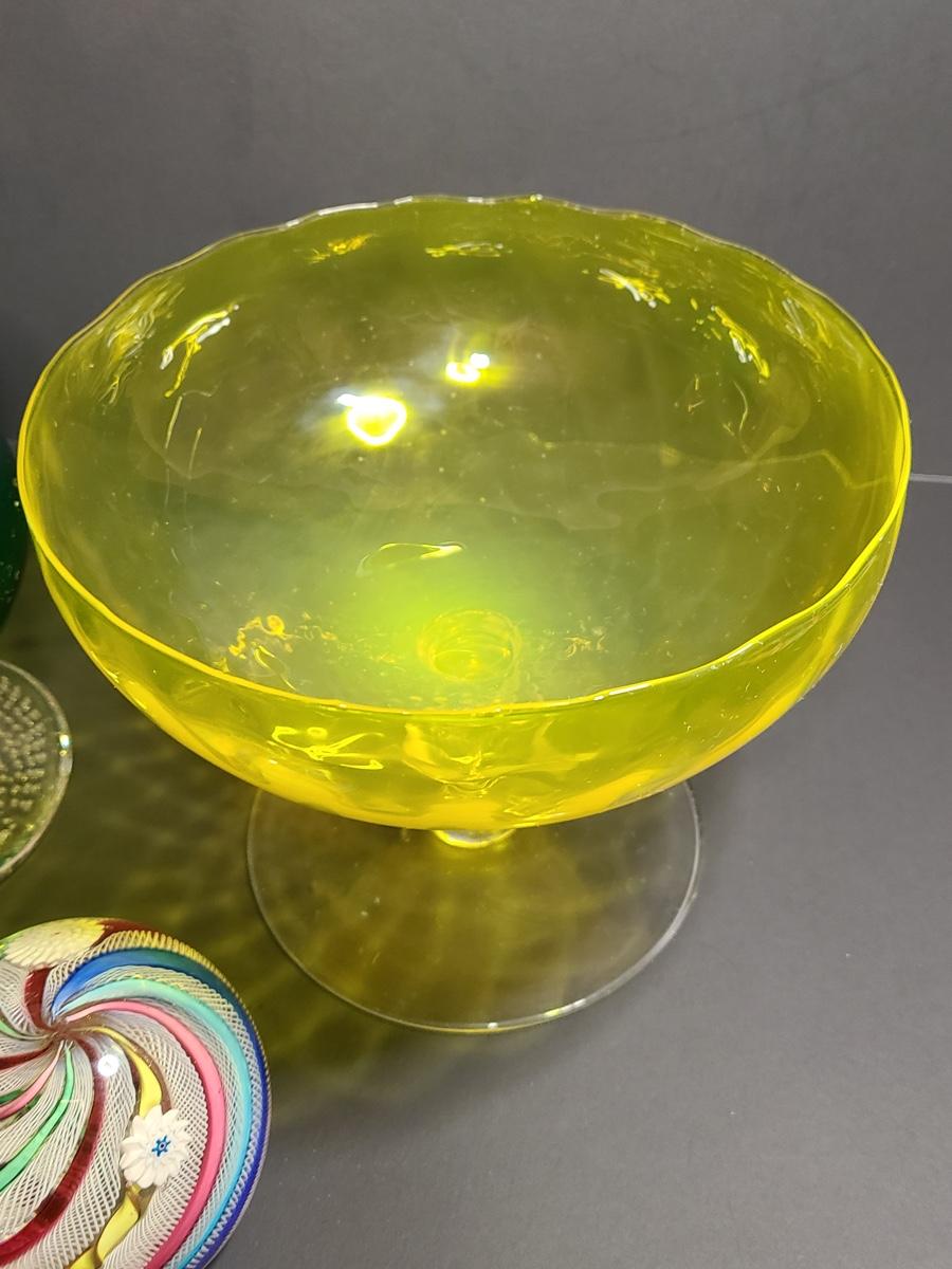 Beautiful pieces of art glass. Please see all pictures as they are the best representation of the items. The pictures show condition, measurements if taken, and what is included in the lot. Due to the large amount that we photograph and the time frame, we are not always able to take measurements. All items unless noted, are pre-owned and have been used. If you purchased furniture, you must bring help. We do not allow one person to carry large furniture out on their own. Bring help, tools and a truck for the safety of our client’s homes, and your personal safety. Company policy. Thank you.