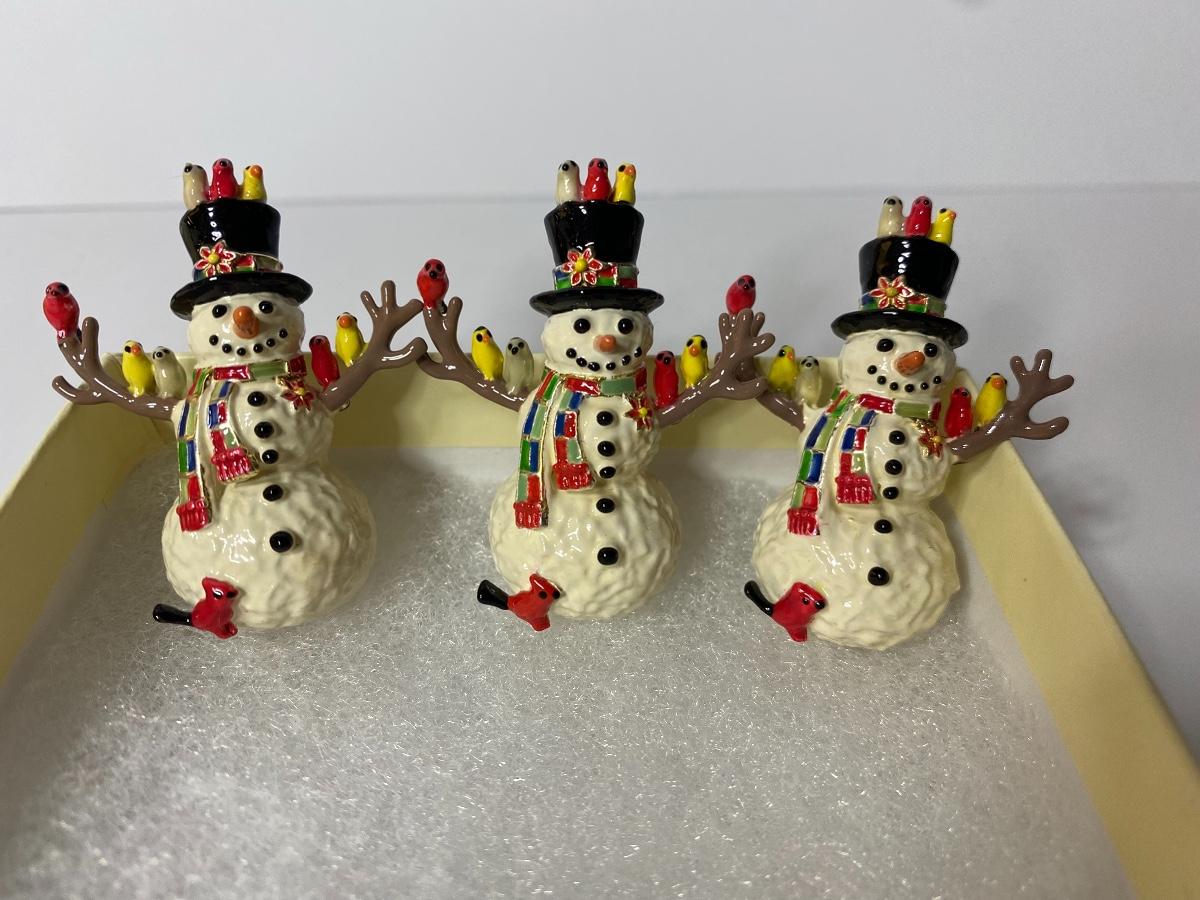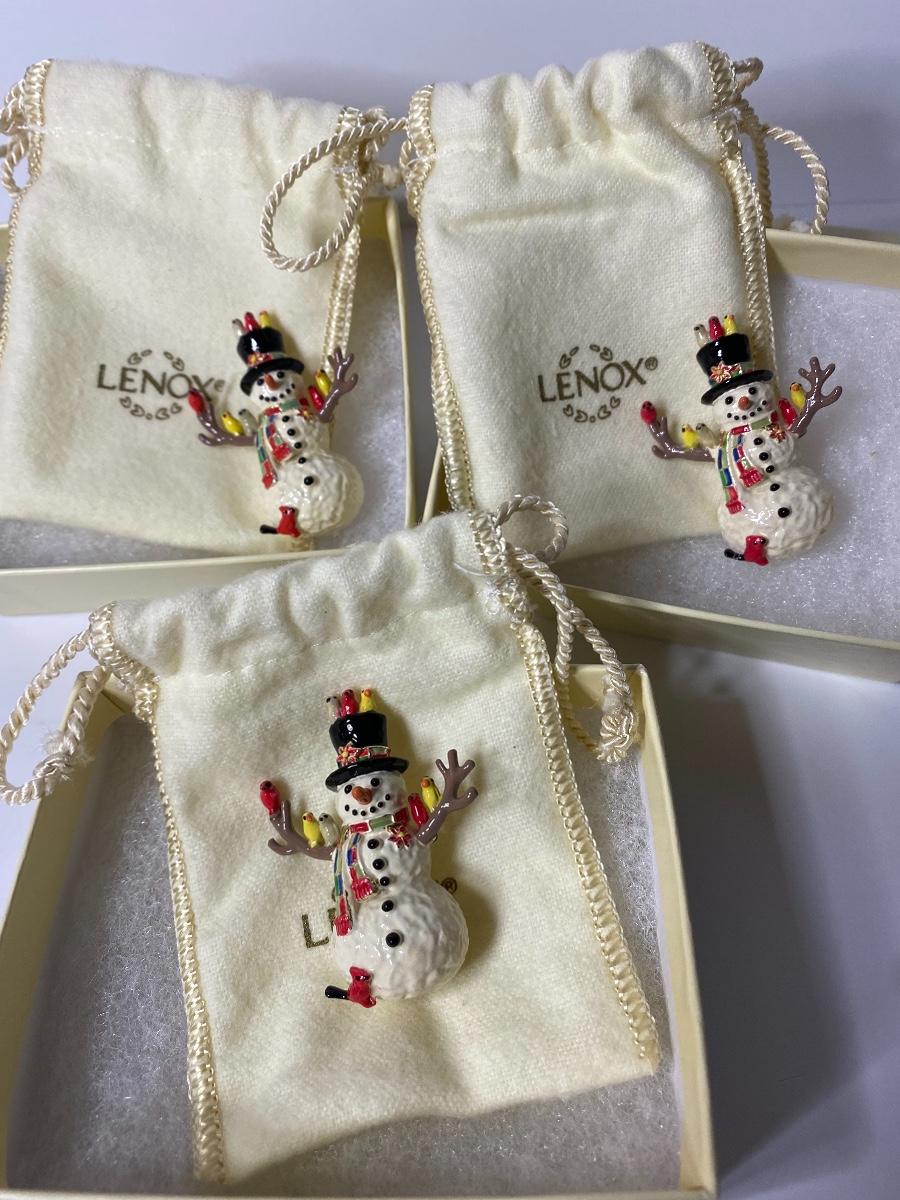 Lot 44: New Enamel Lenox Snowman Pins/Brooches (Set of three, Great gifts)
