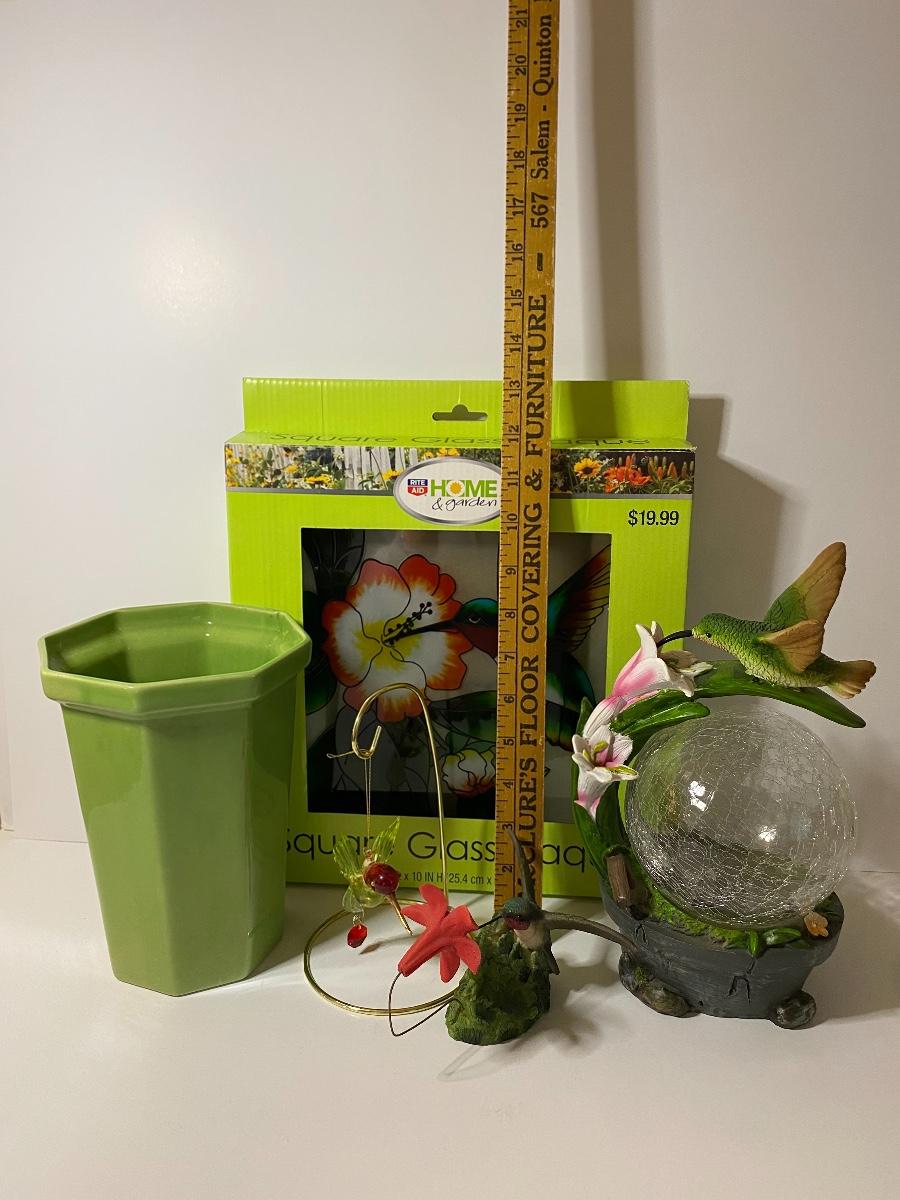 Glass plaque, garden globe, hummingbird decor and more. Please see all pictures as they are the best representation of the items. The pictures show condition, measurements if taken, and what is included in the lot. Due to the large amount that we photograph and the time frame, we are not always able to take measurements. All items unless noted, are pre-owned and have been used. If you purchased furniture, you must bring help. We do not allow one person to carry large furniture out on their own. Bring help, tools and a truck for the safety of our client’s homes, and your personal safety. Company policy. Thank you.
