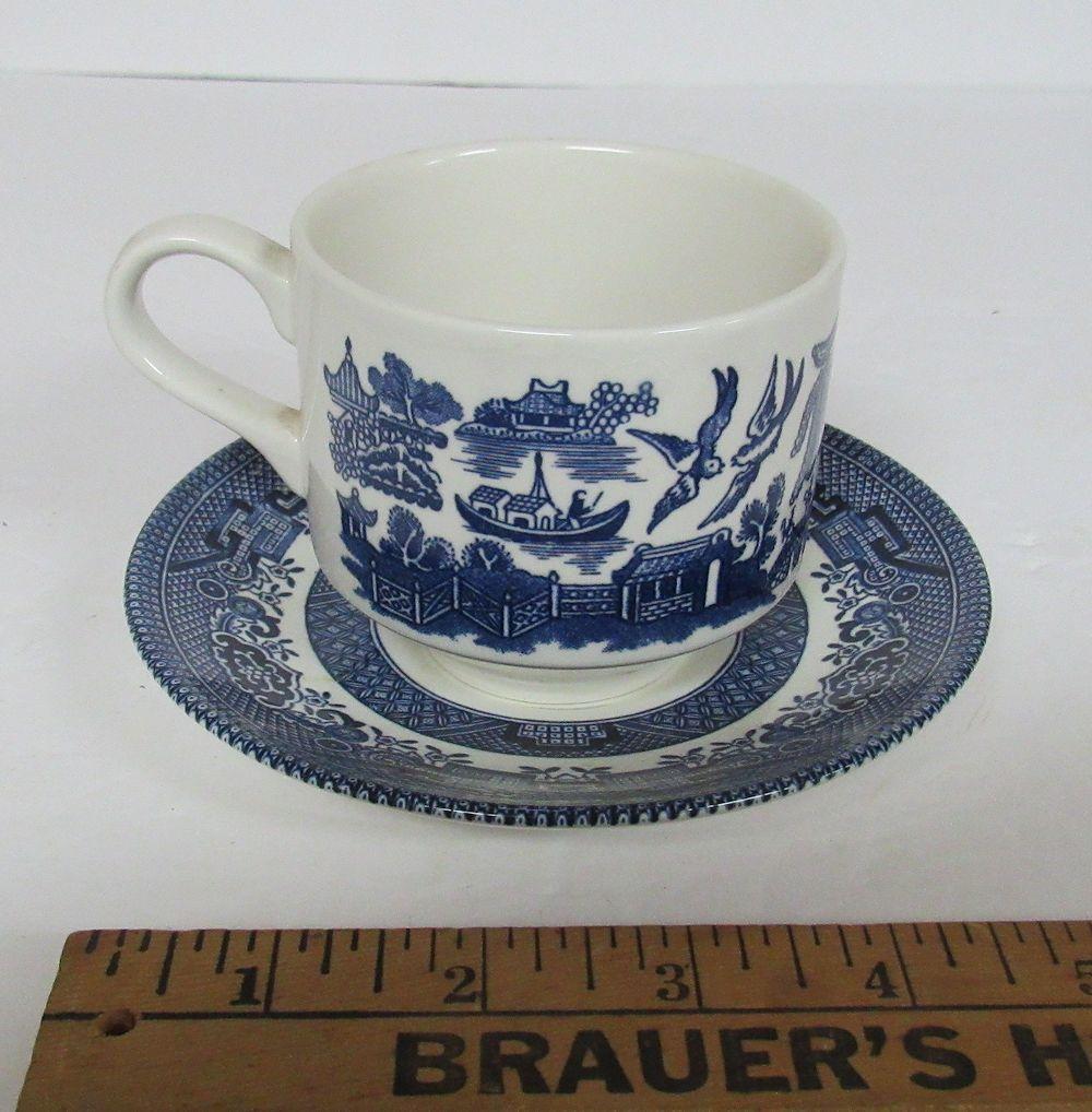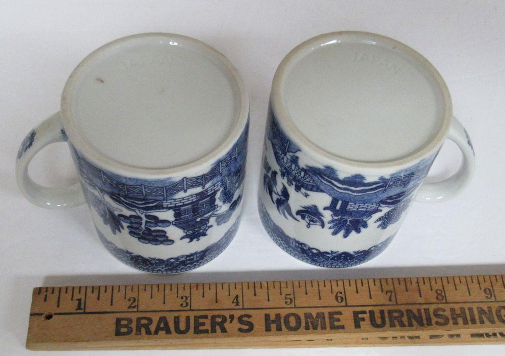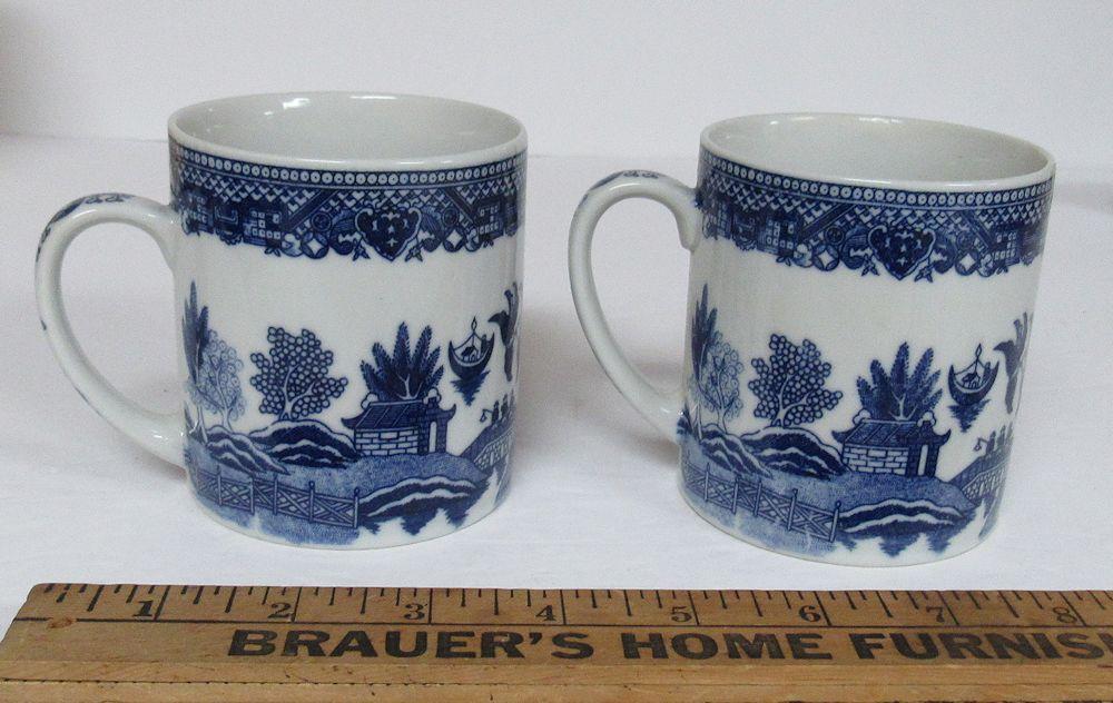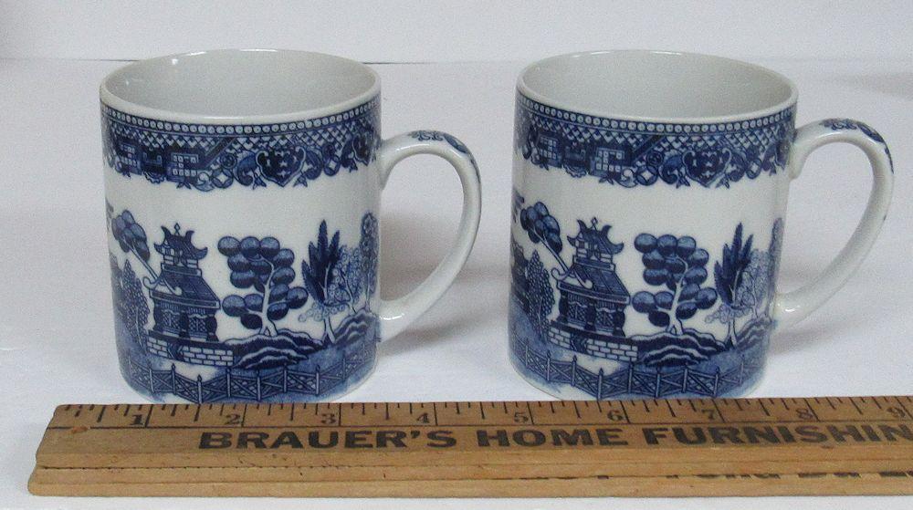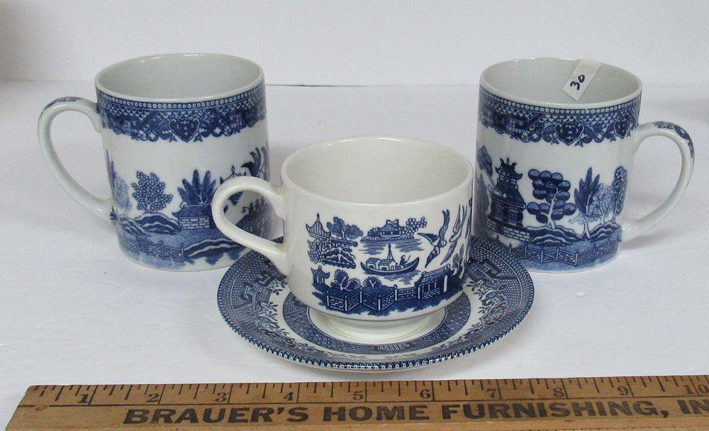 Vintage Blue Willow Lot, 2 Mugs, Taiwan, and Cup and Saucer, Churchill England