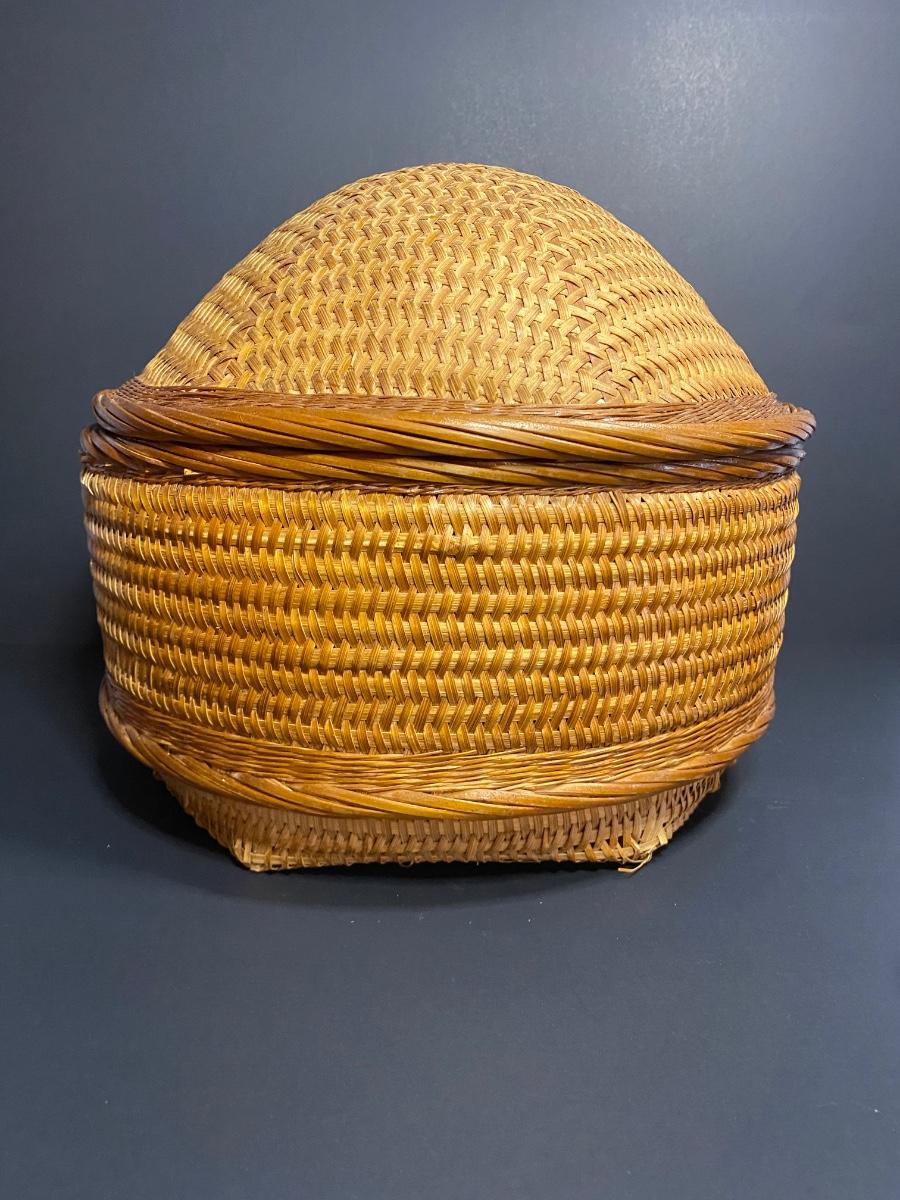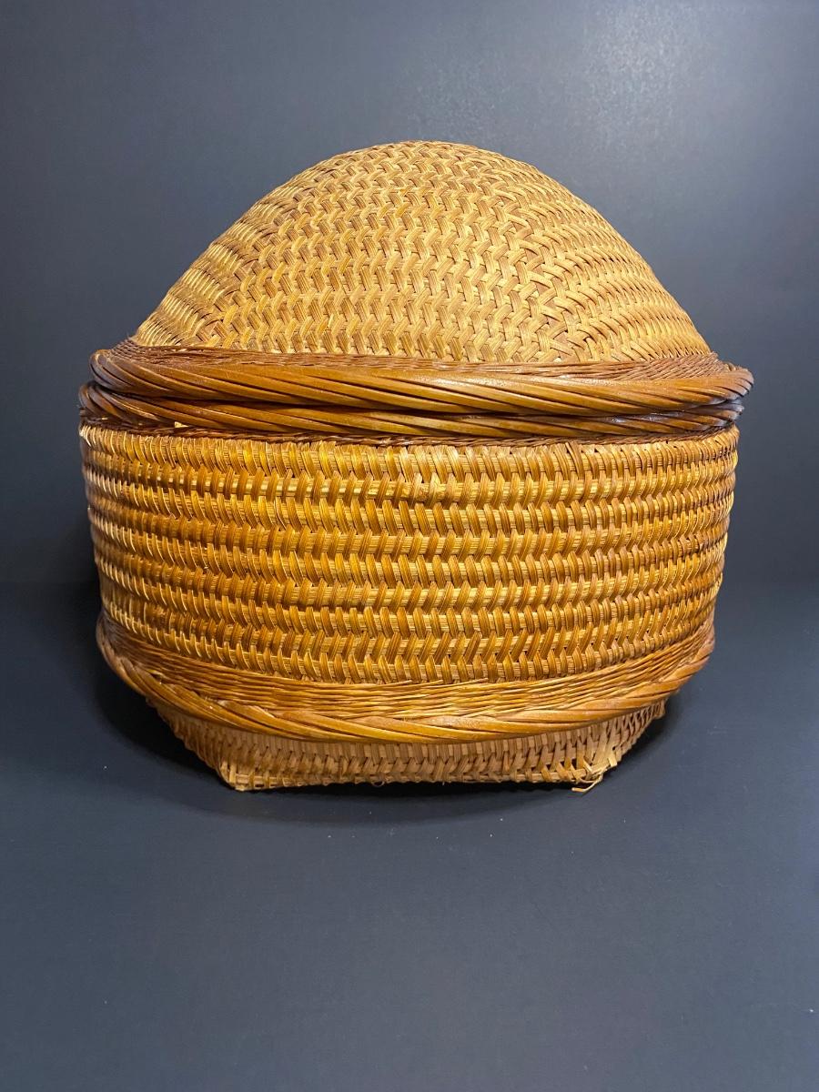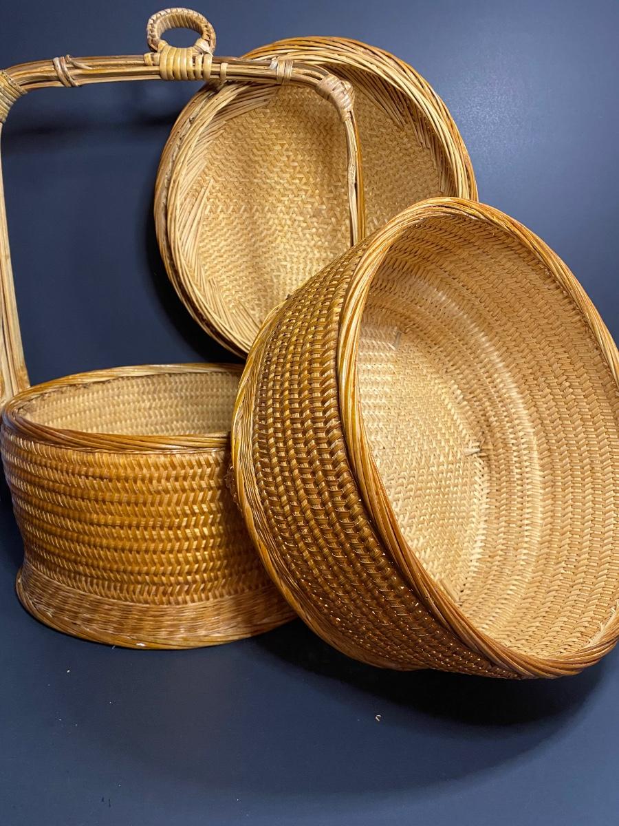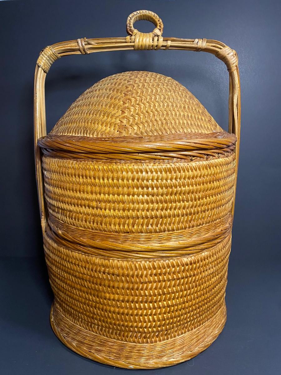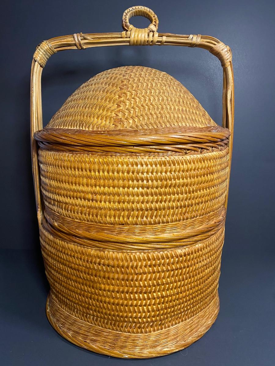 Lot 440: Asian 2 Tier Wedding Basket, MCM Feather Bird Art Sets