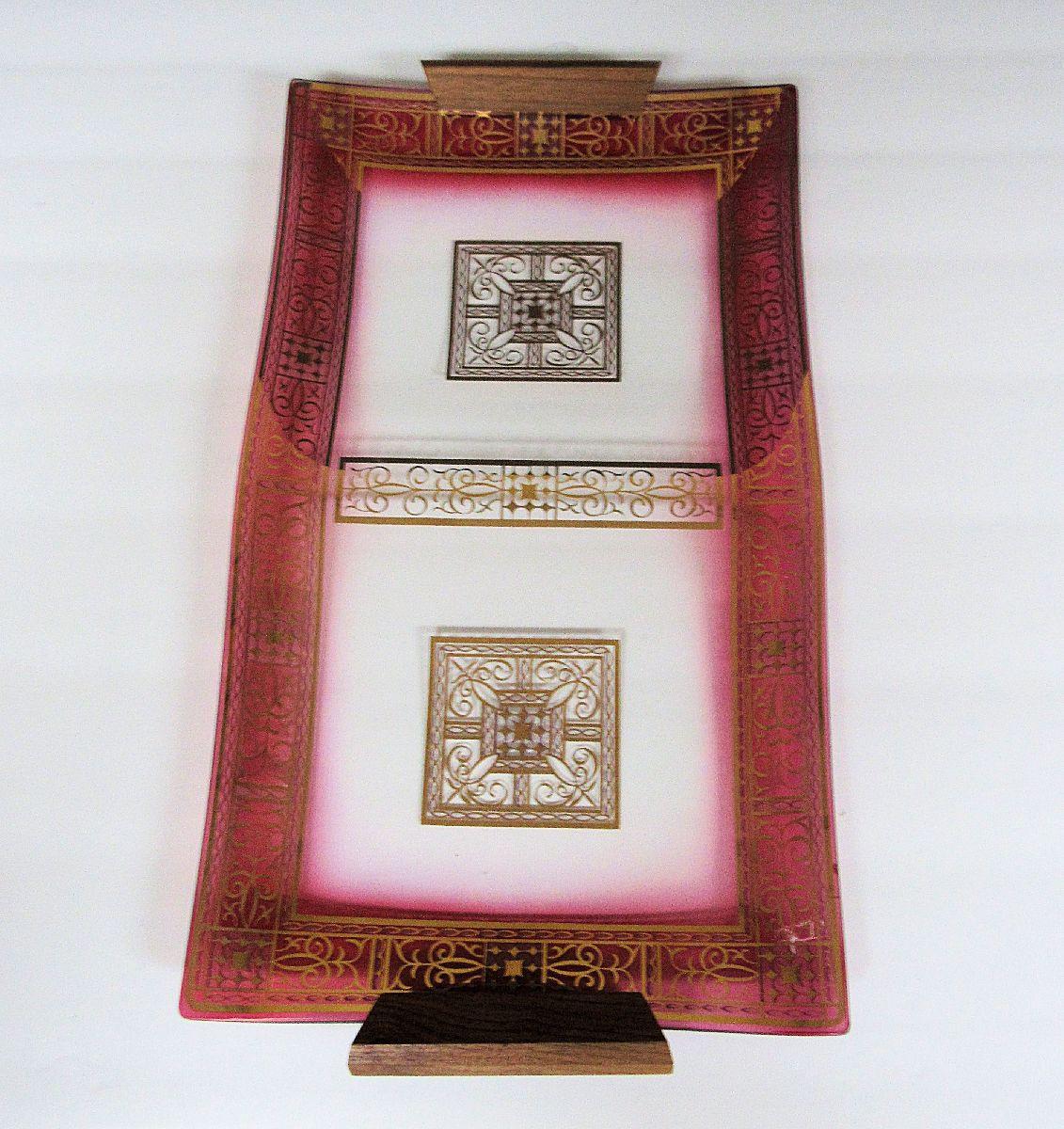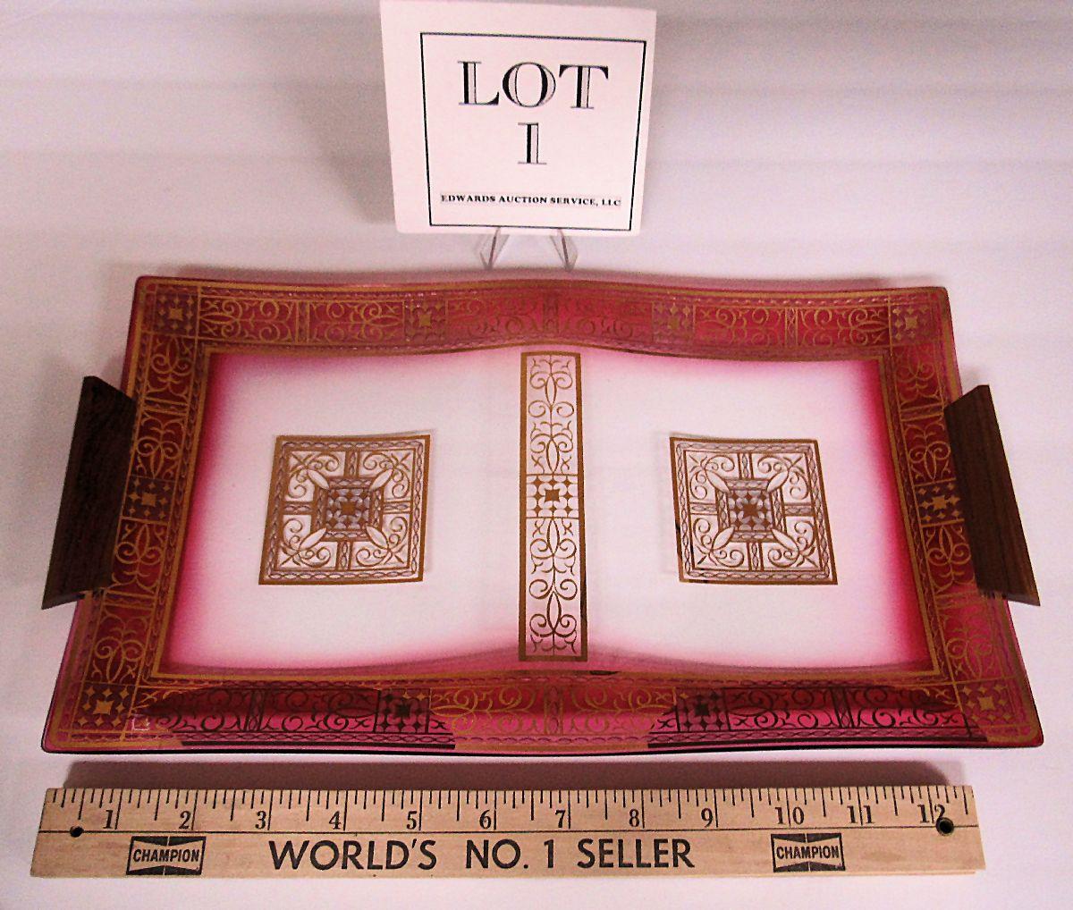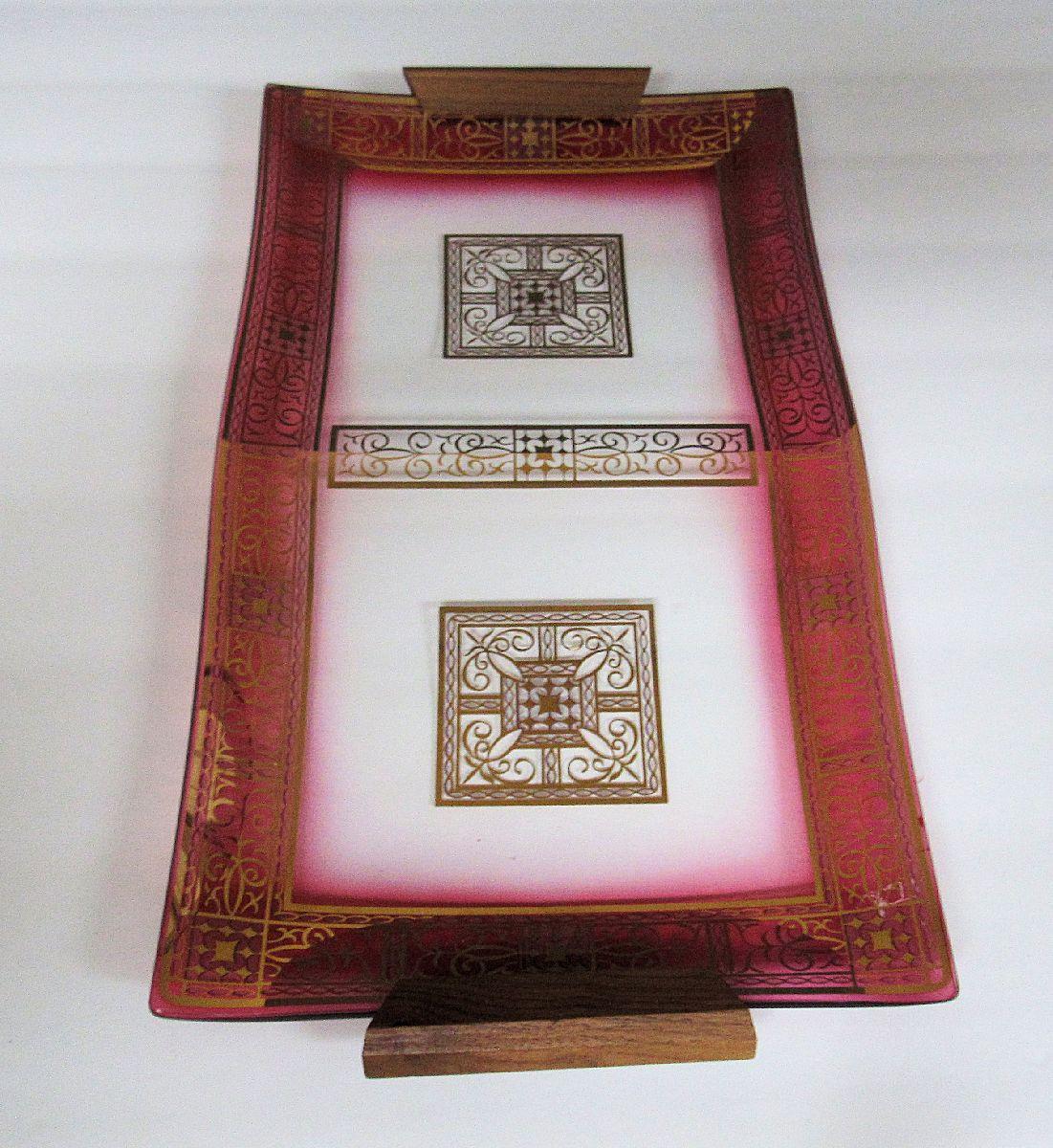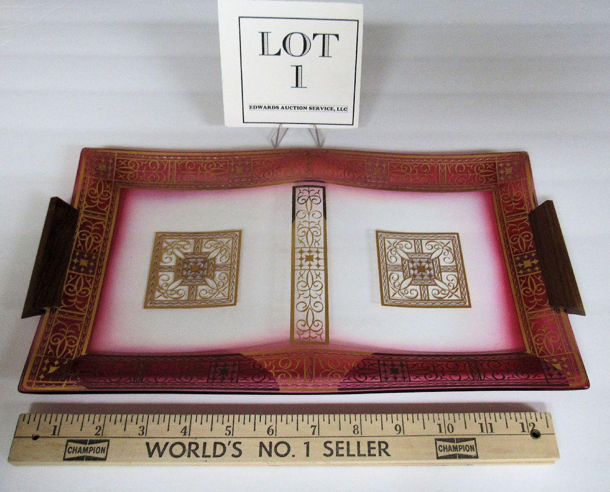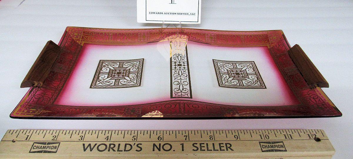 Mid Century Modern Glass and Wood Handled Tray