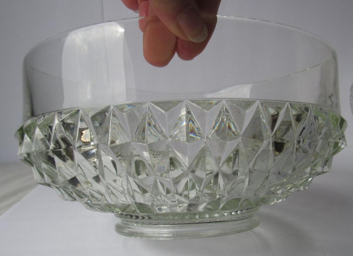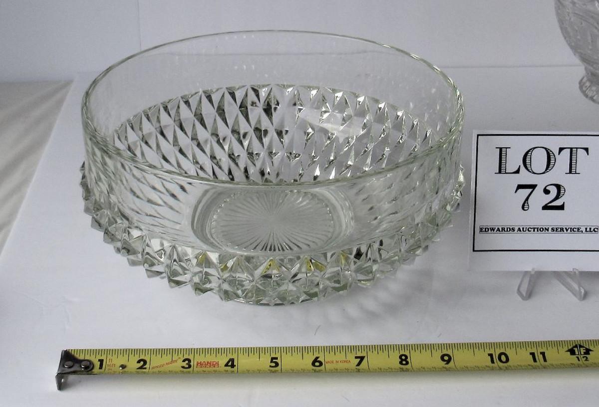 Large Indiana Glass Diamond Point Heavy Glass Serving Bowl