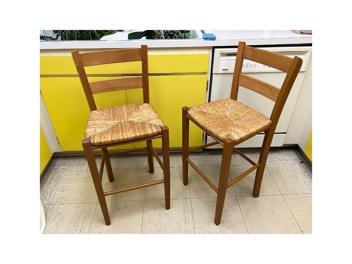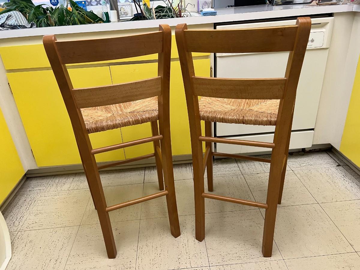Pair of Wooden Mid Century Rattan Chair Bar Stools
