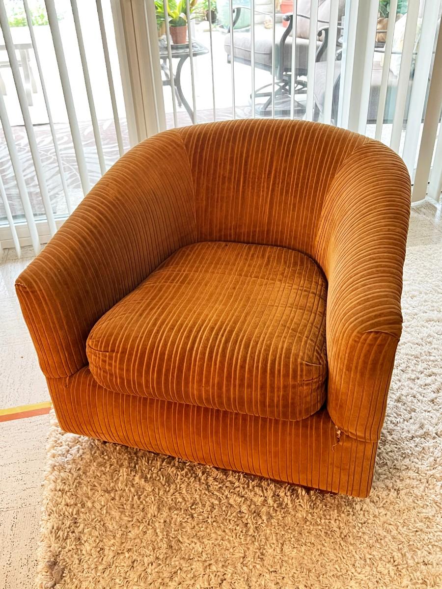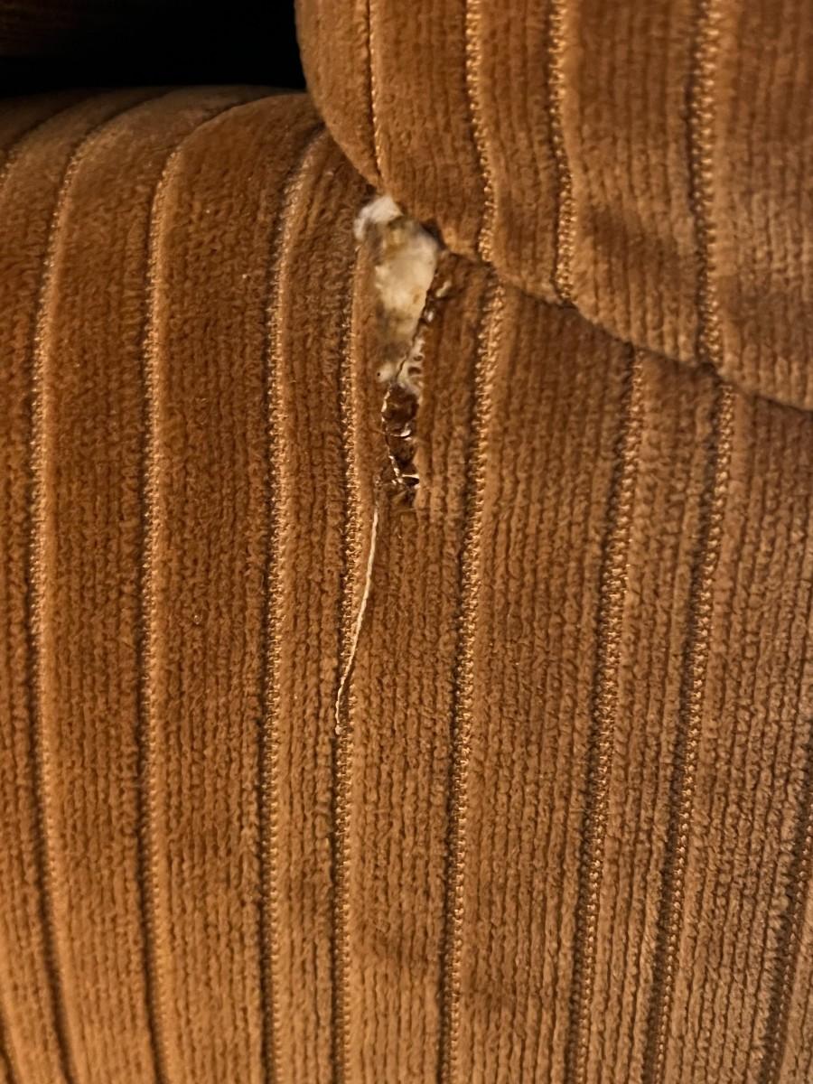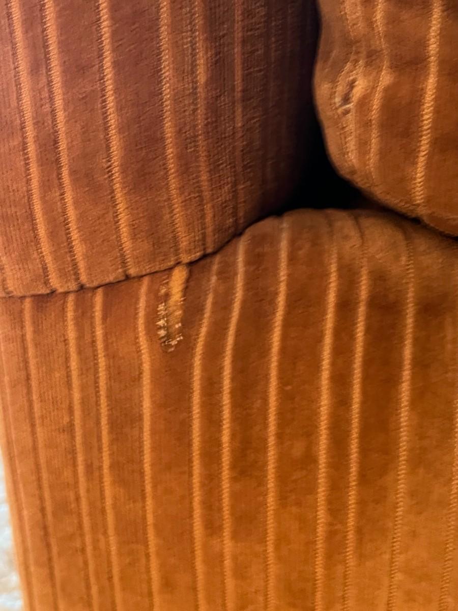 There is some light ripping to the upholstery, but there is no other significant damage and is in overall good useable or displayable condition. Check pictures for more details and for sizing.