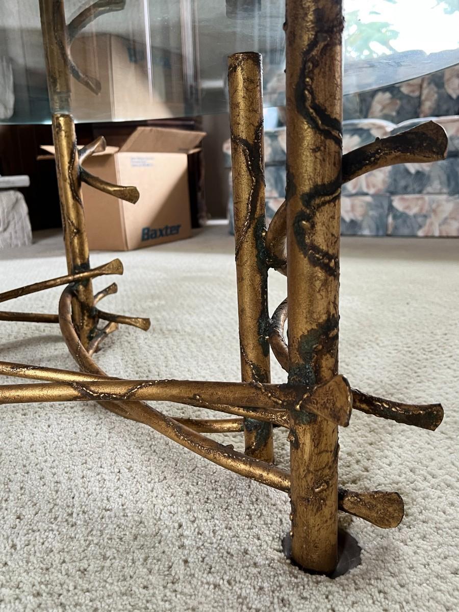 Vintage Silas Seandel sculptured metal Round Glass Top Brutalist Gold Gilt Lotus Coffee Table