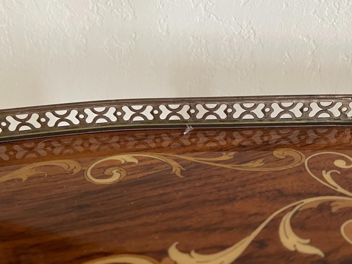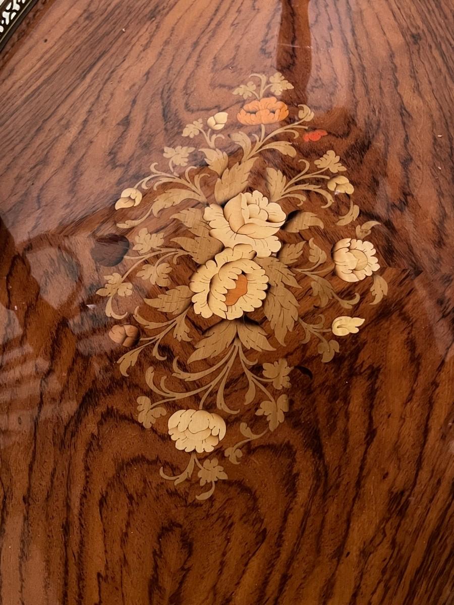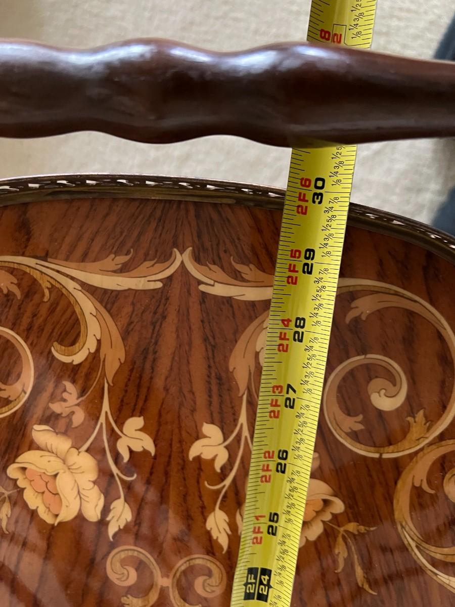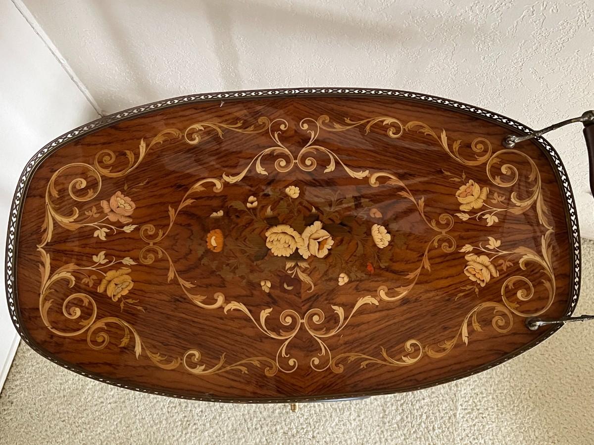 Vintage Inlaid Walnut Wood Trolley Tea Dessert Cart Italian Marquetry