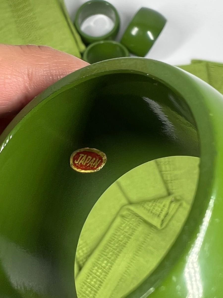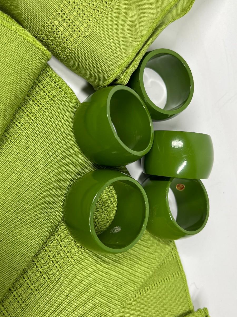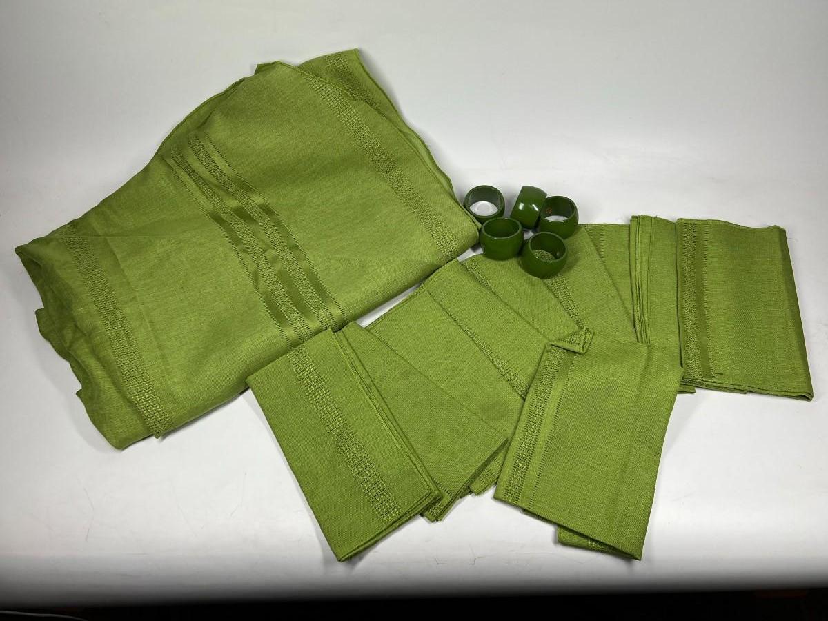 Lot of Green Dinner Table Fabric Napkins, Rounded Off Table Cover, & Napkin Holders