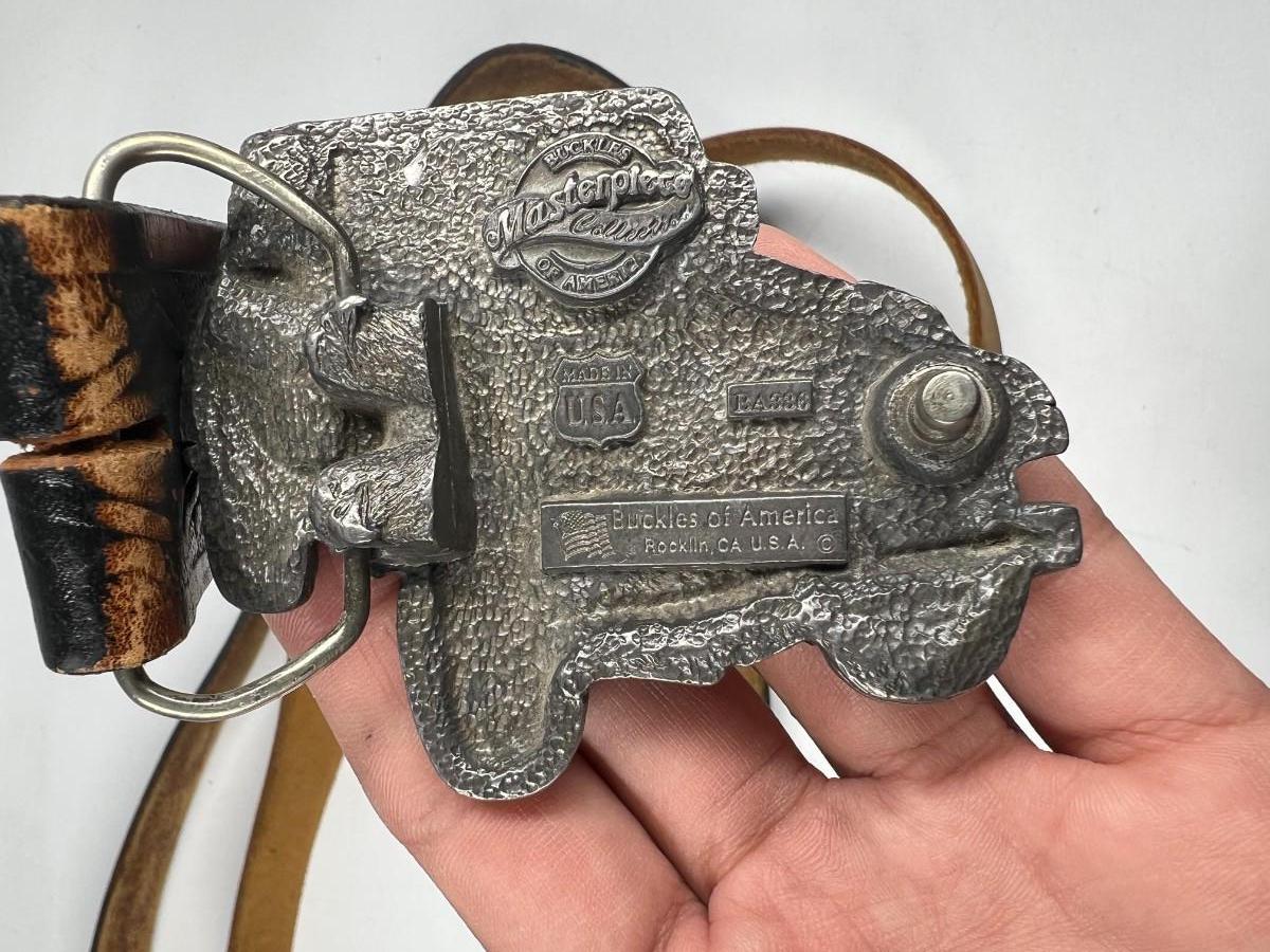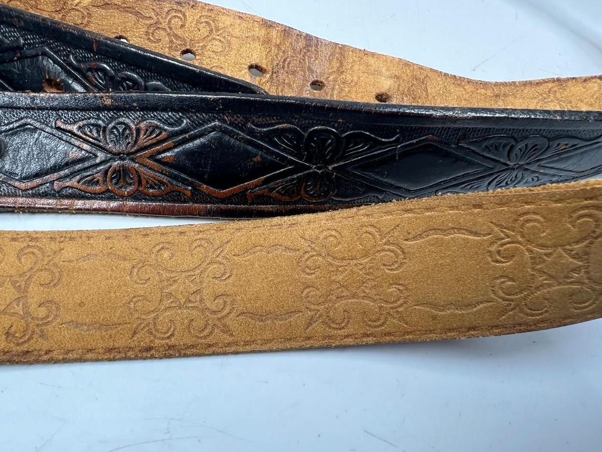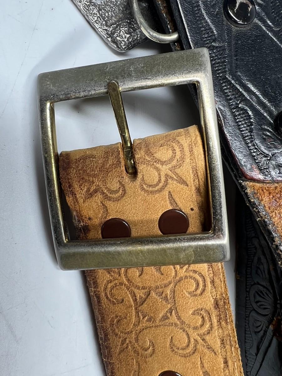 There is some retro wear to both of the belts, but there is no significant damage and is in overall good collectibe or wearable condition. Check pictures for more details, both belts are about size 42.