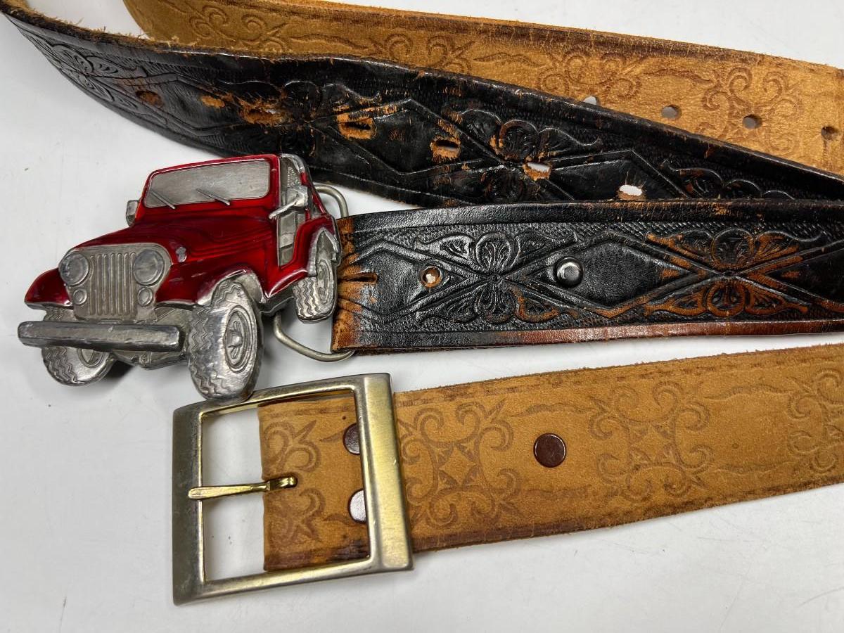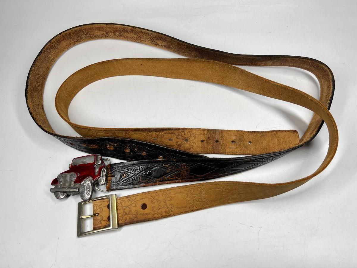 Retro Belts Black Leather Belt with Buckles of America Jeep Buckle & Western Country Style Belt
