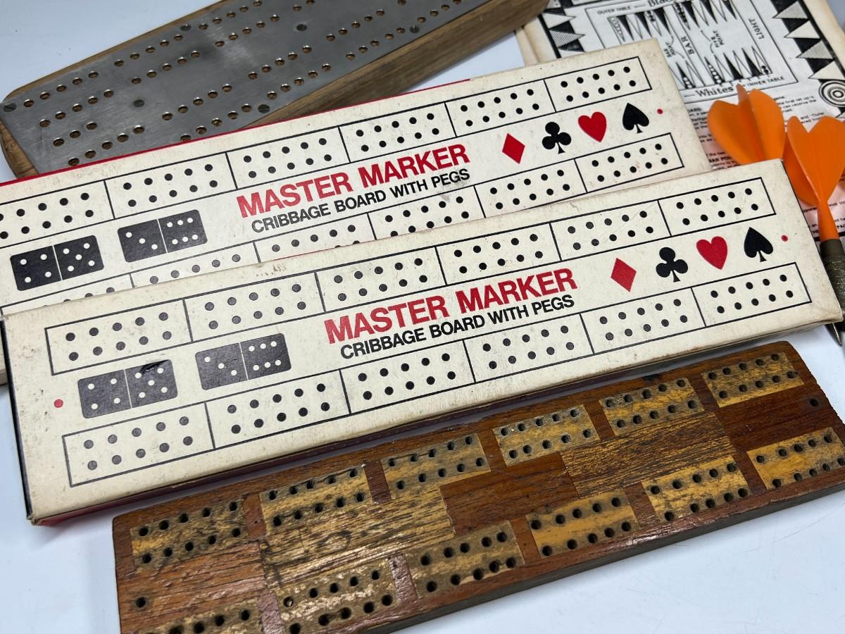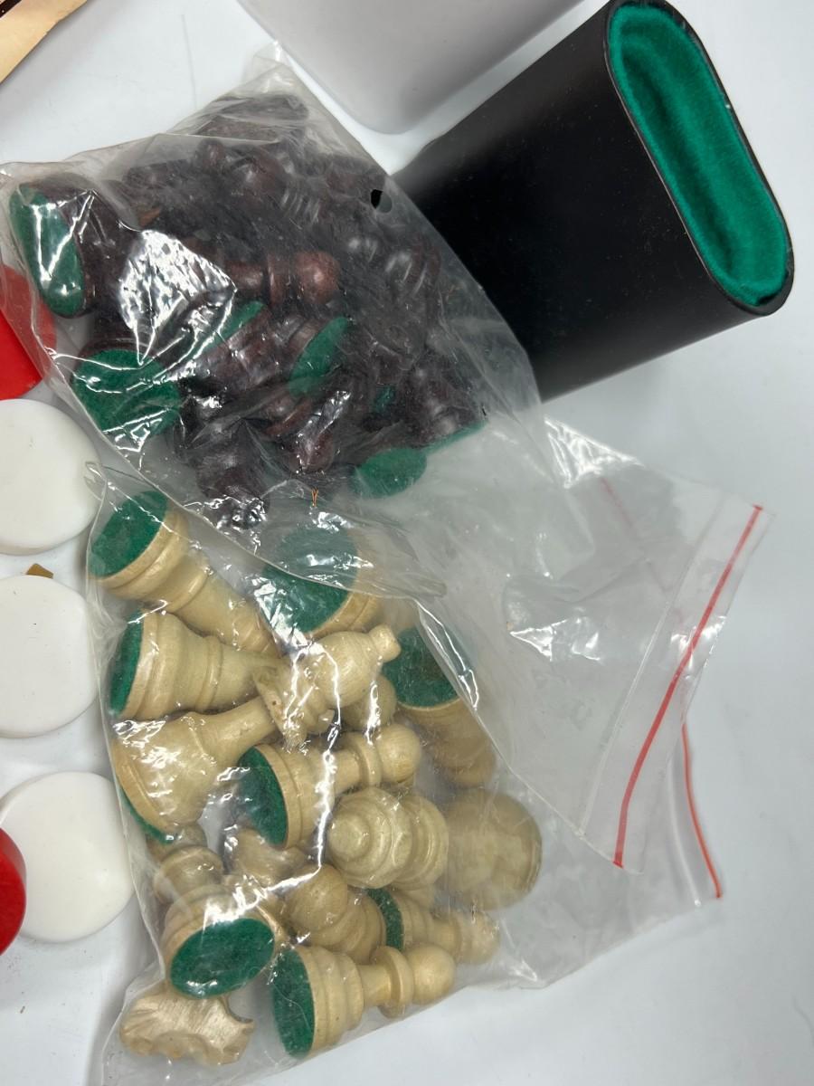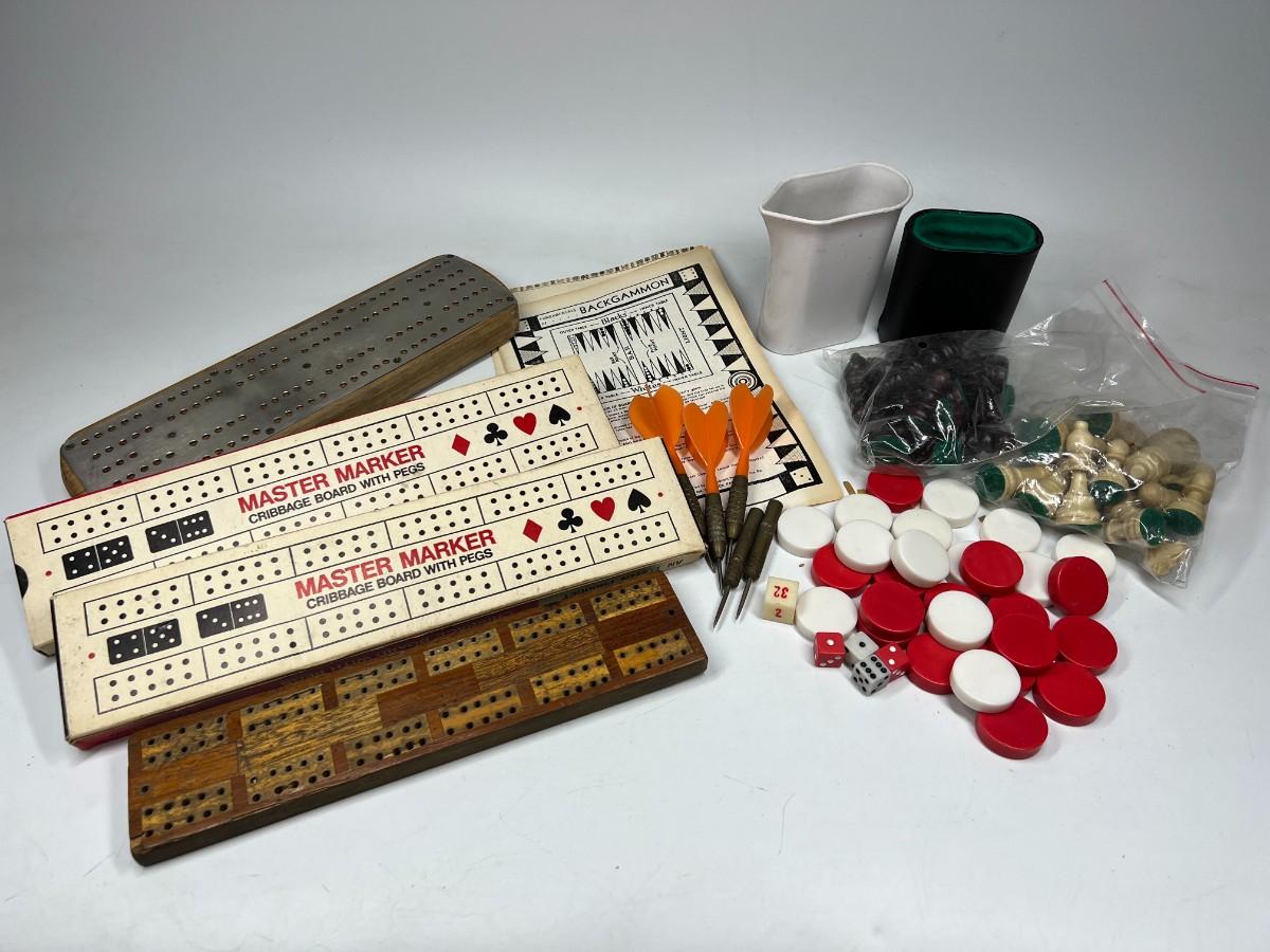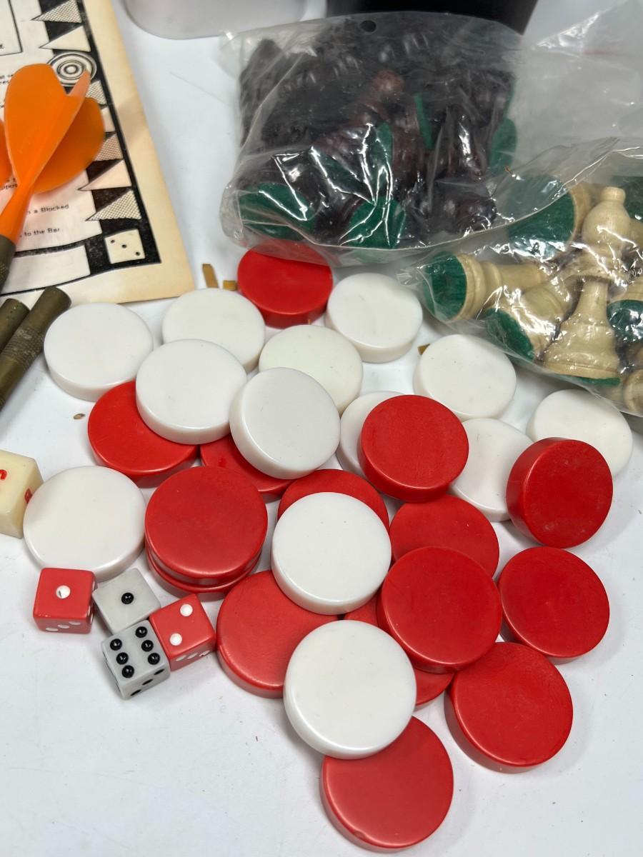 Lot of Retro Games & Gaming Accessories Cribbage Board, Chess Pieces, Darts, Dice & More