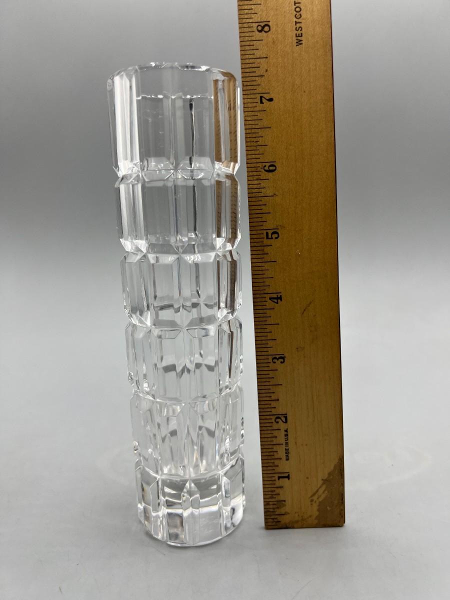 Vintage Square Mid Century Crystal Glass Bud Flower Vase
