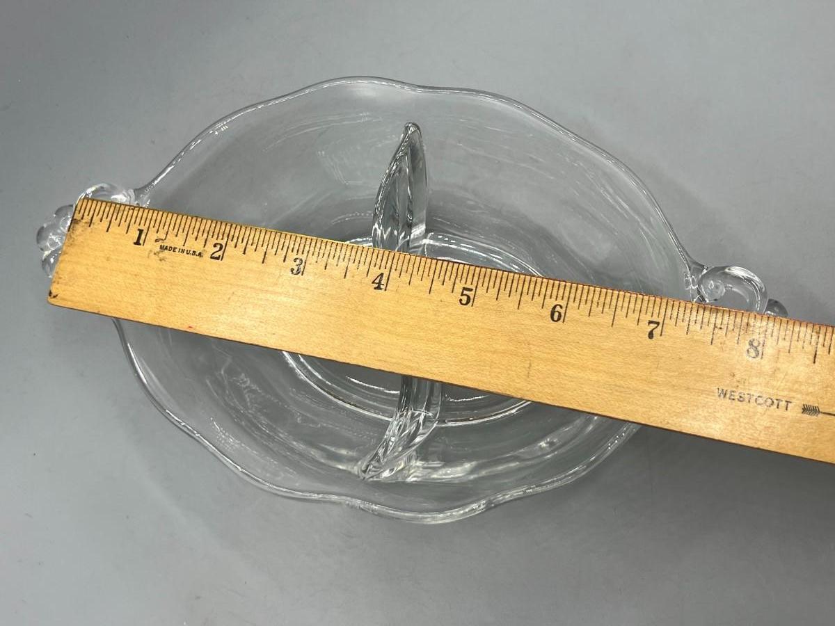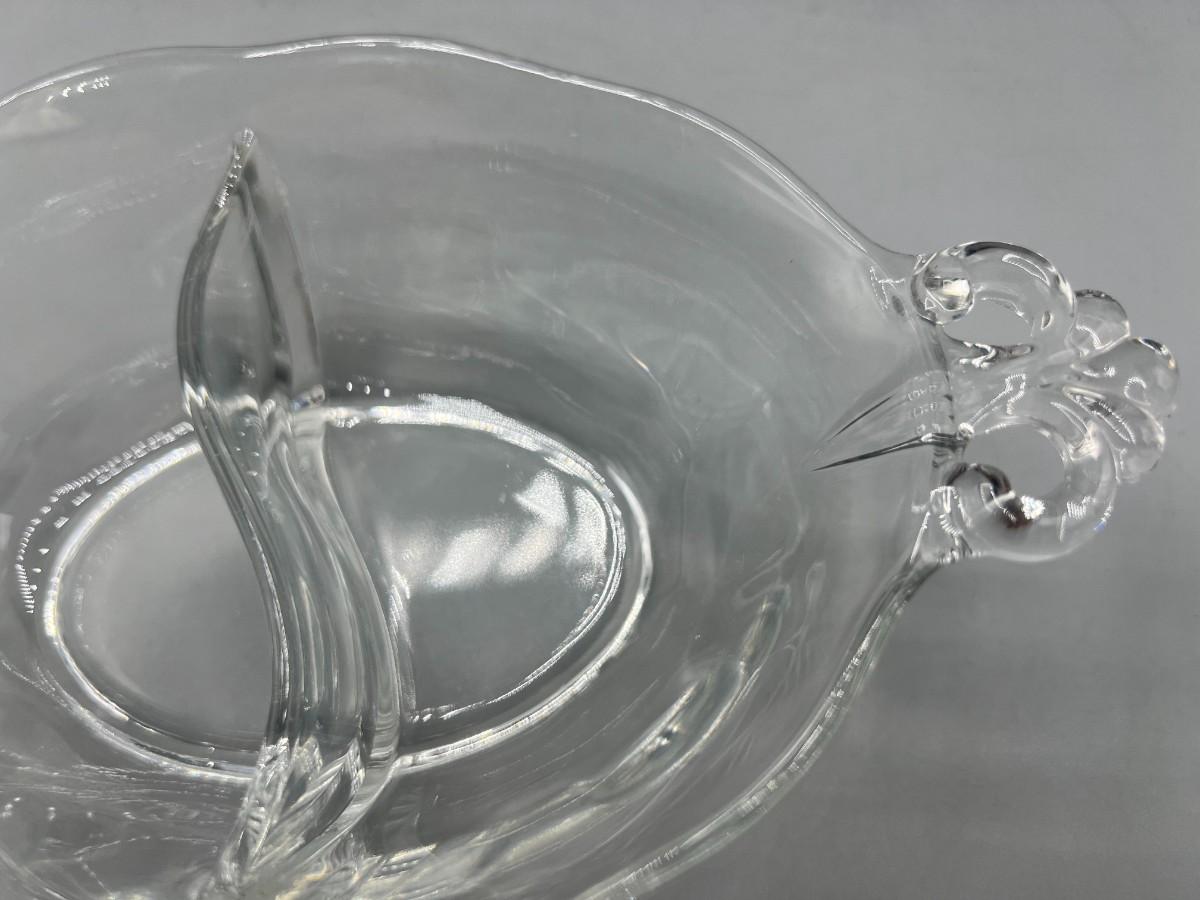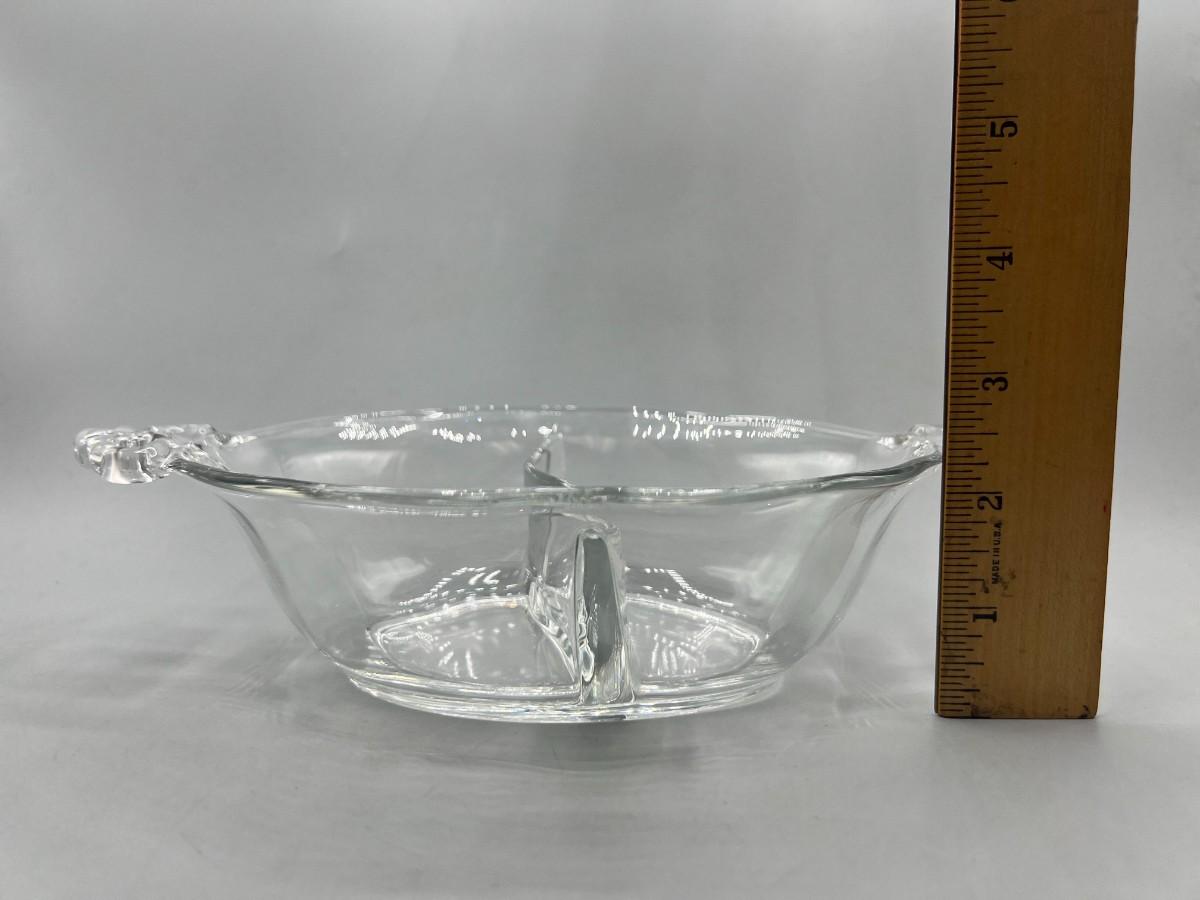 Vintage Elegant Handle Divided Sauce Serving Bowl Clear Glass Dish