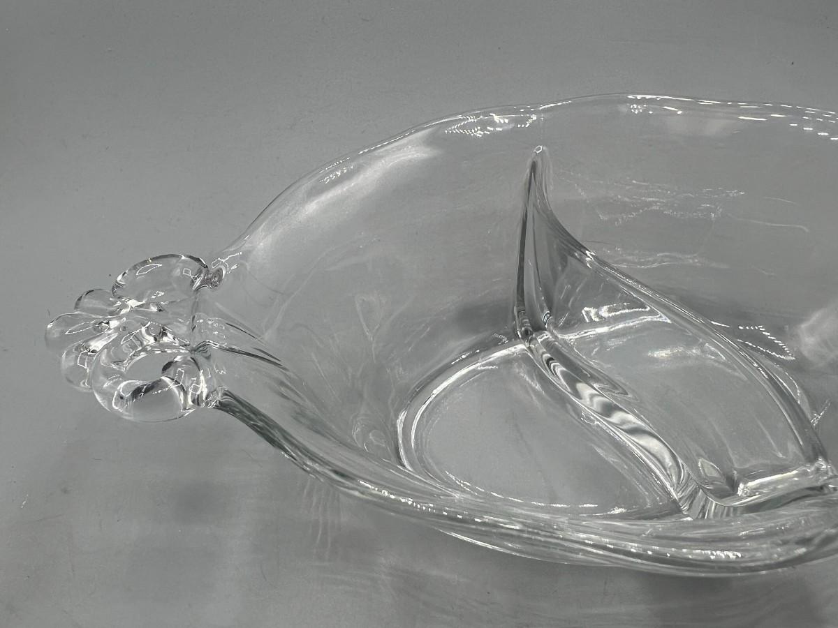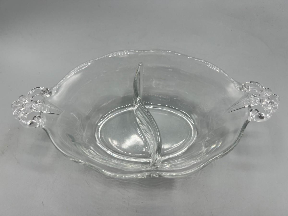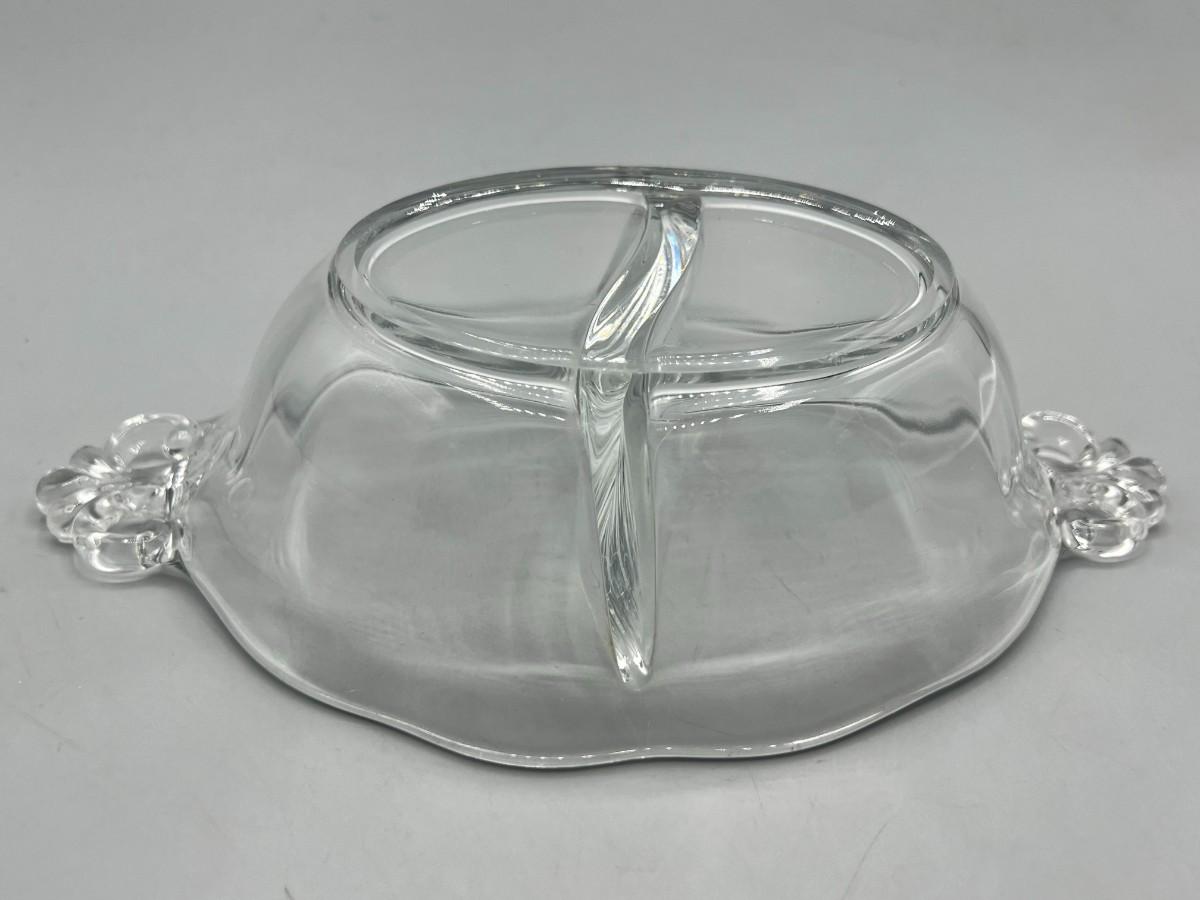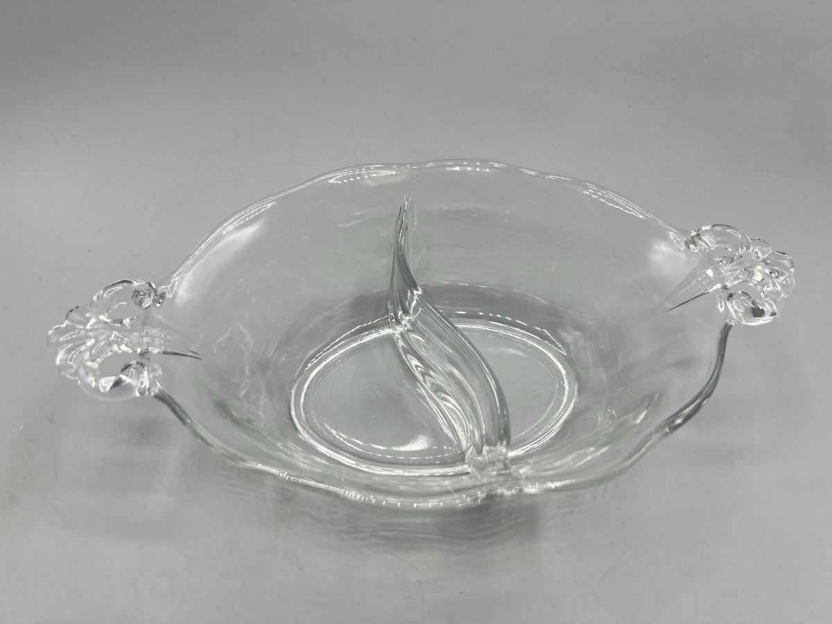 Vintage Elegant Handle Divided Sauce Serving Bowl Clear Glass Dish