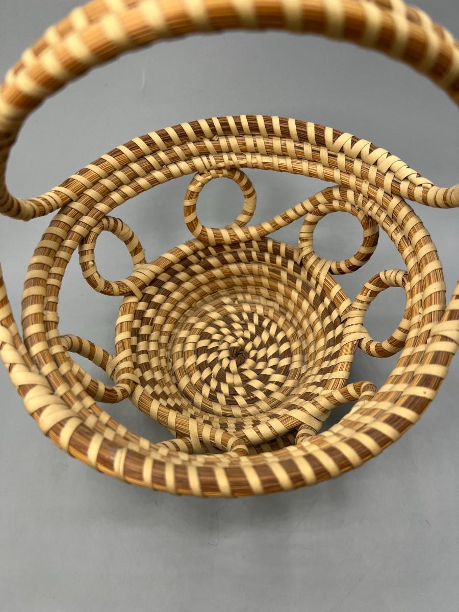 There is no damage to the basket and is in good useable condition. Similar style to Charleston Sweetgrass baskets.