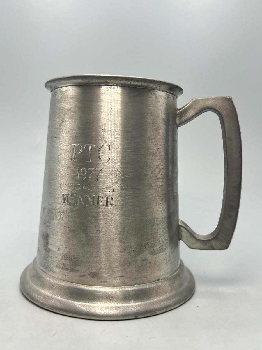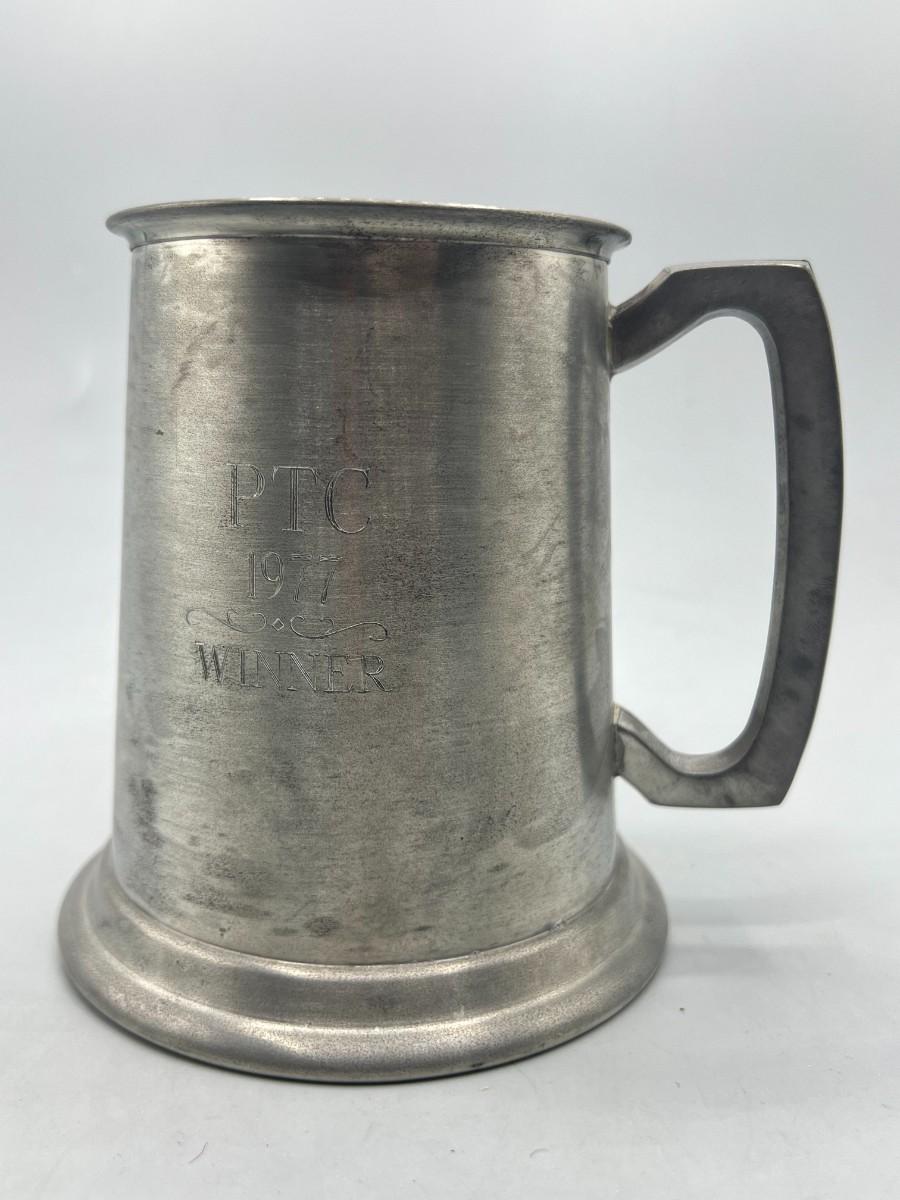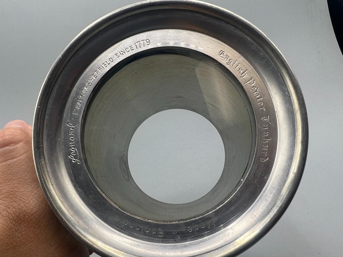Vintage English Pewter Tankard Leonard Eales of Sheffield Glass Bottom Beer Stein