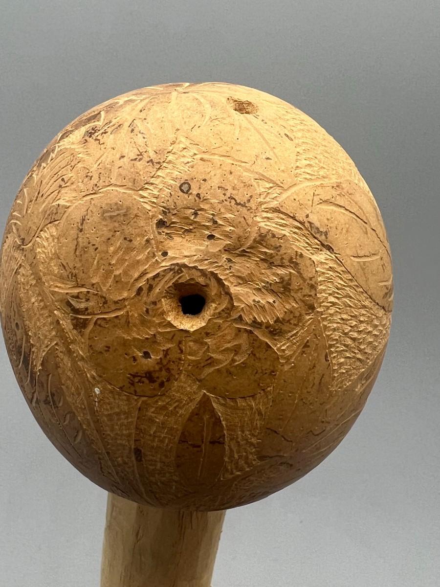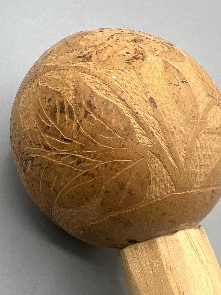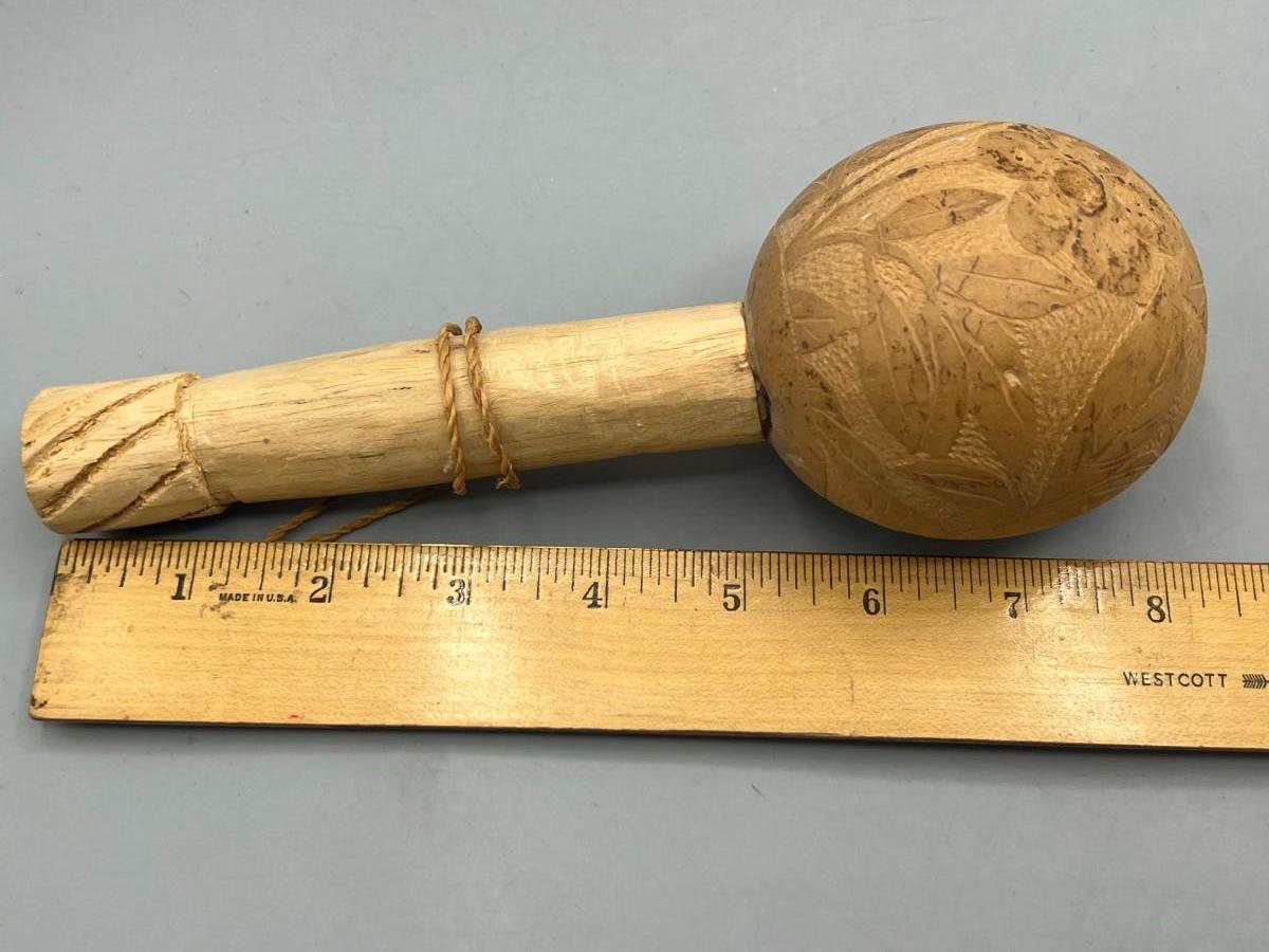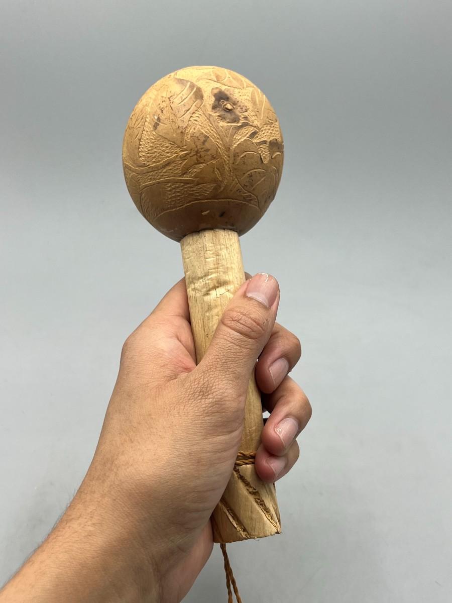 Vintage Hand Carved Tropical Leaves Wooden Rustic Maraca Shaker