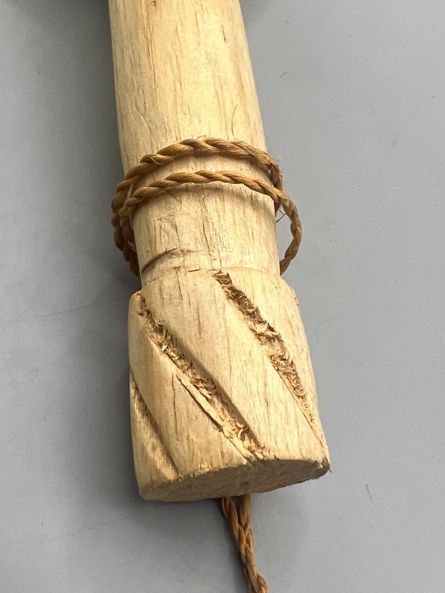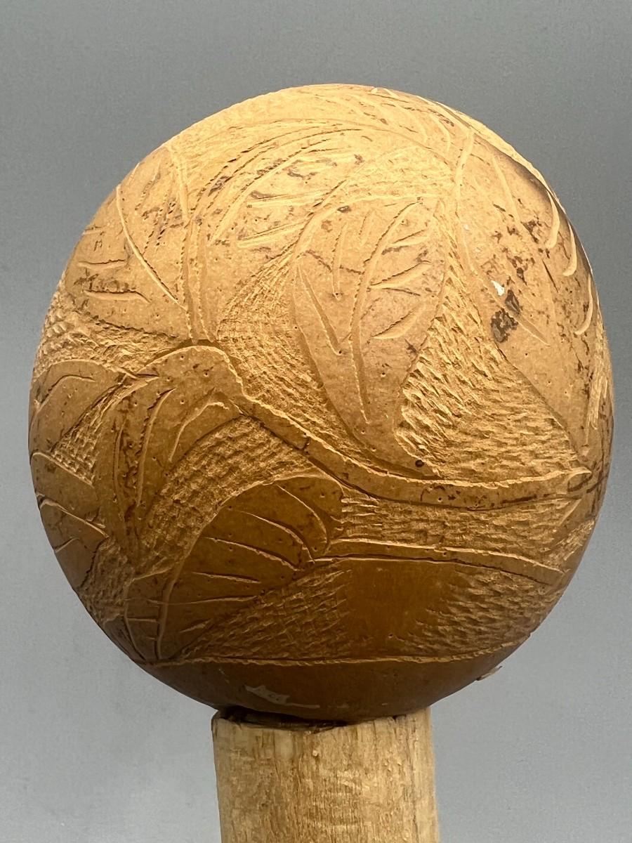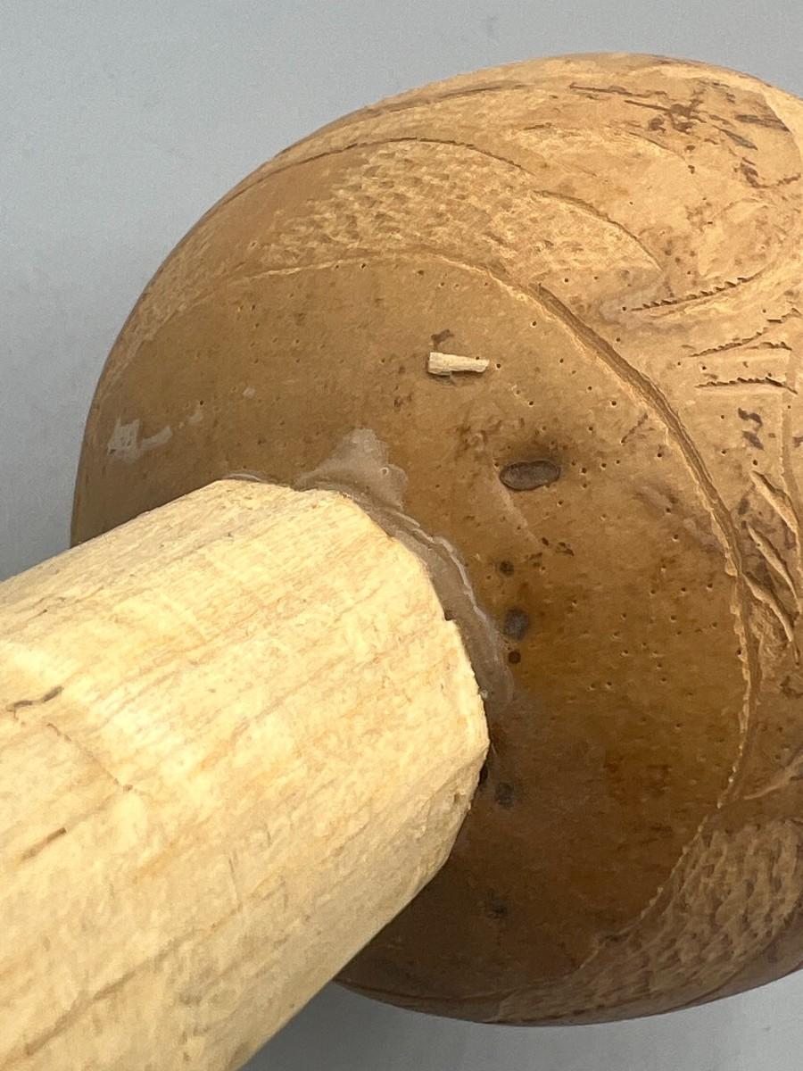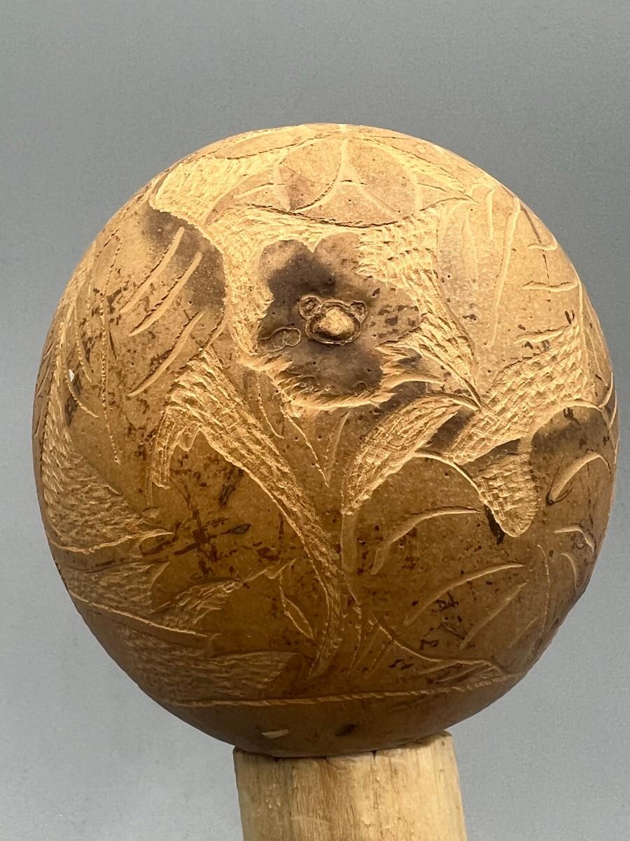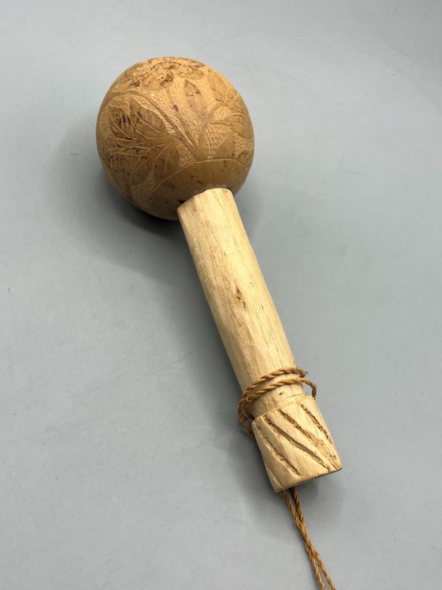 Vintage Hand Carved Tropical Leaves Wooden Rustic Maraca Shaker