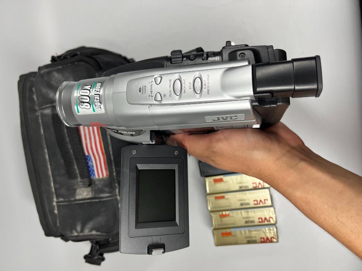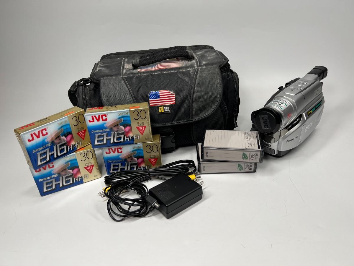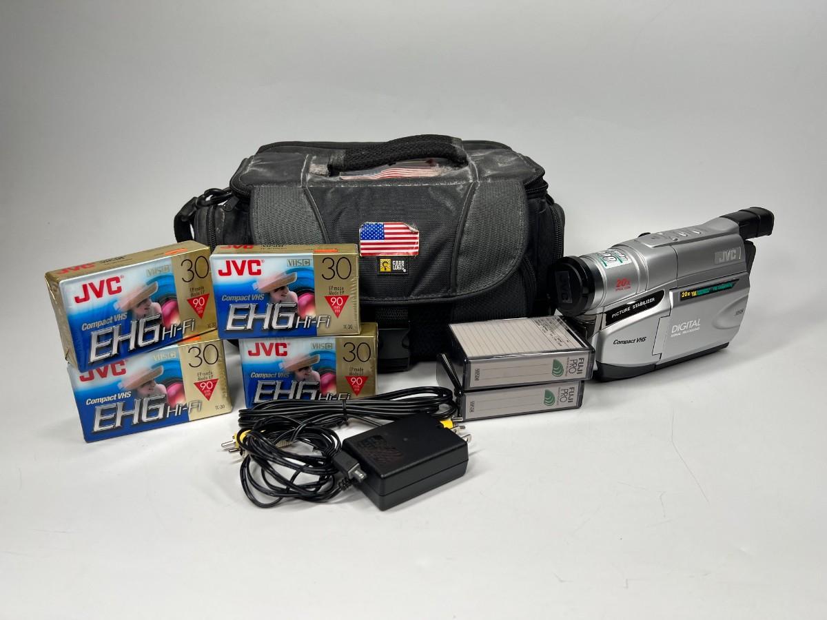 Retro JVC Compact VHS Camcorder GR-AXM17 with New Micro VHS Cassettes & Carrying Bag