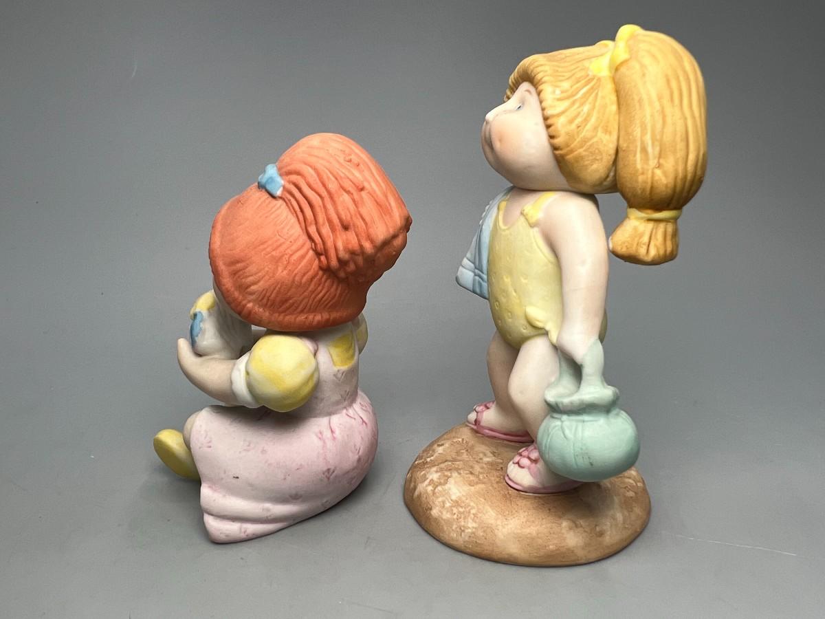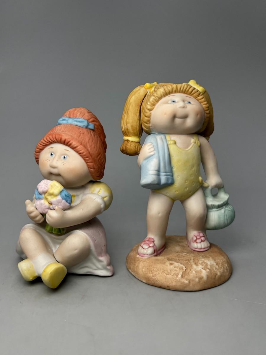 Vintage Cabbage Patch Kids Porcelain Figurines O.A.A. Inc The Bathing Beauty & Flower Girl