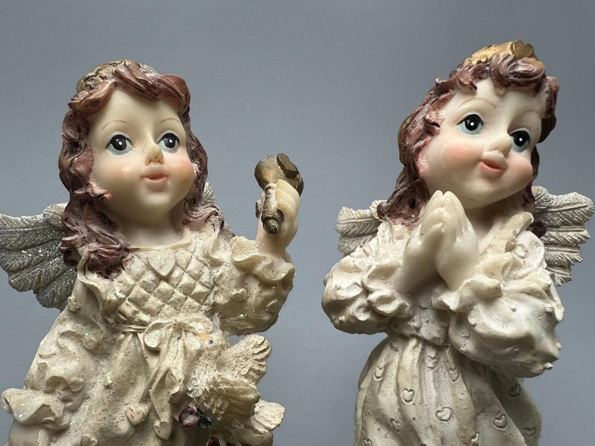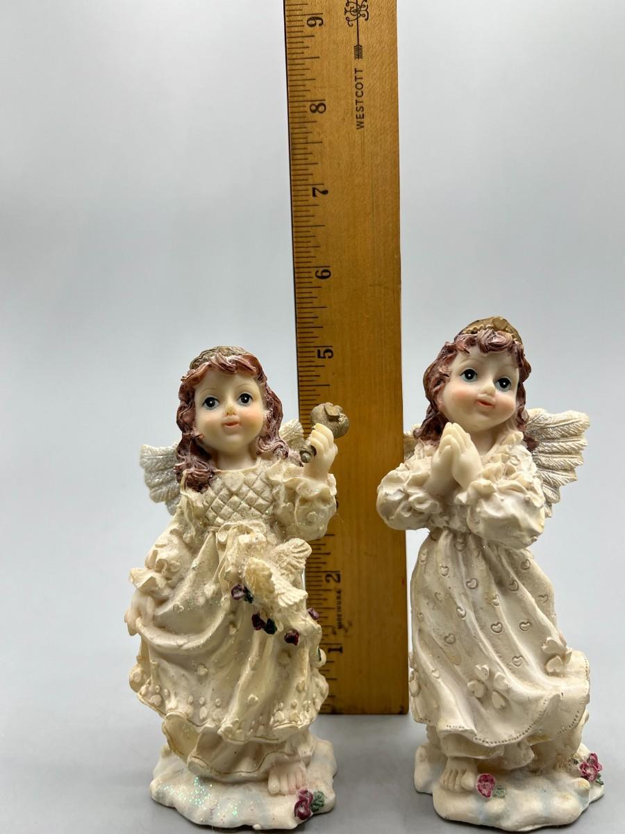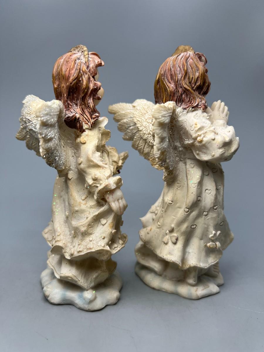Vintage Small Pair of Little Girl Glittery Angel Resin Figurines