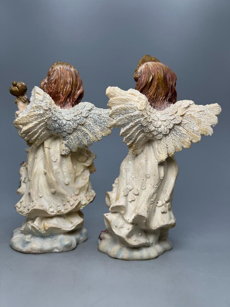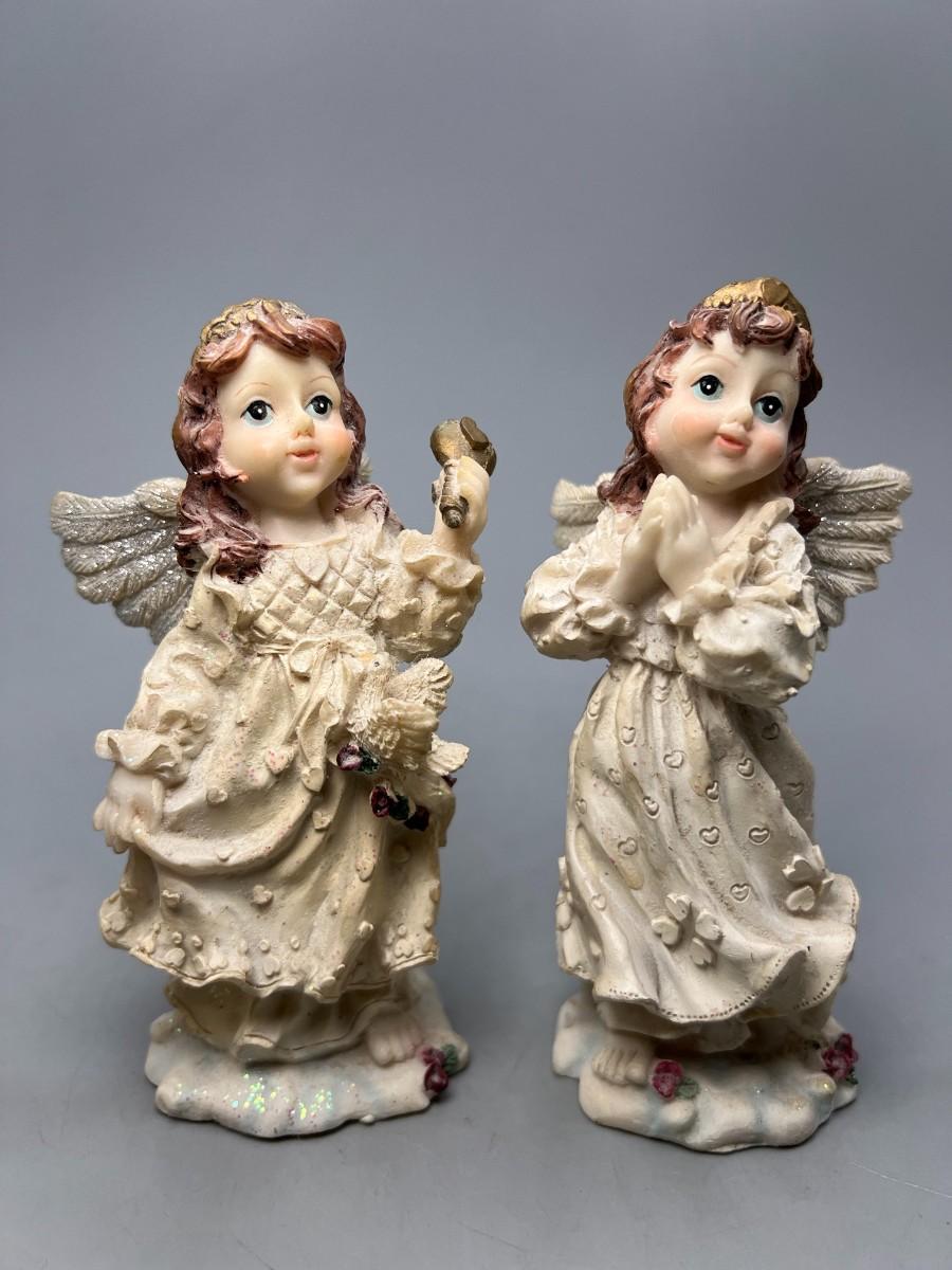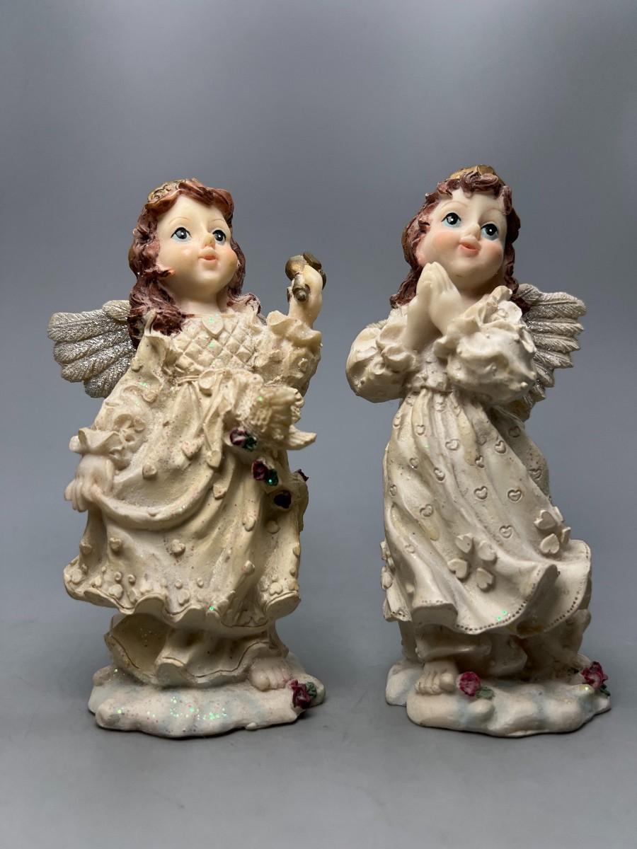 Vintage Small Pair of Little Girl Glittery Angel Resin Figurines
