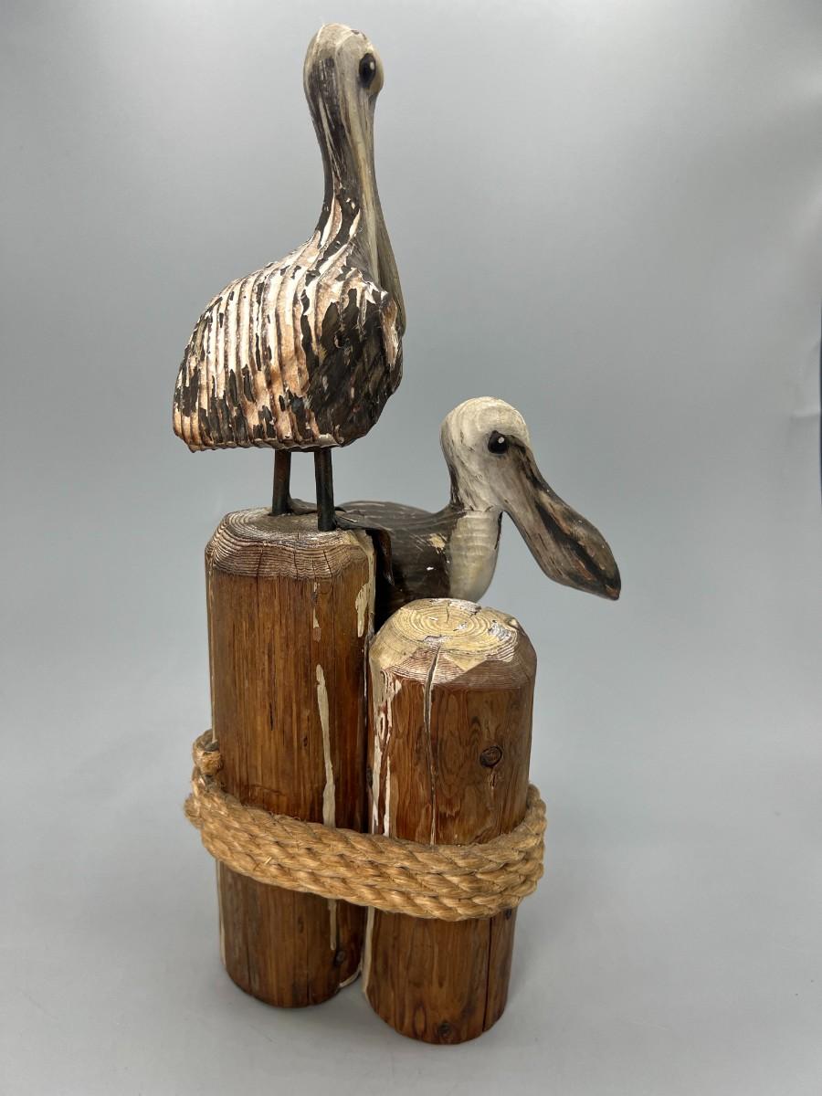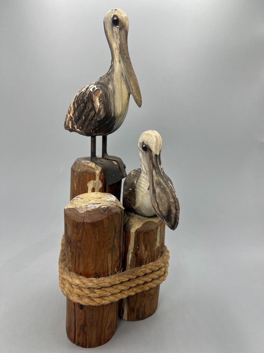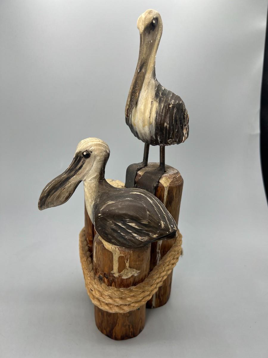 Nautical Wharf Boardwalk Wood Pelican Figurine Statue