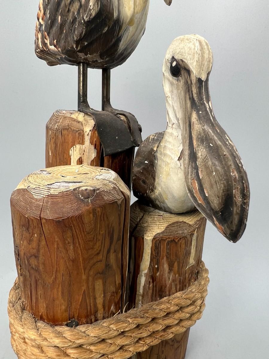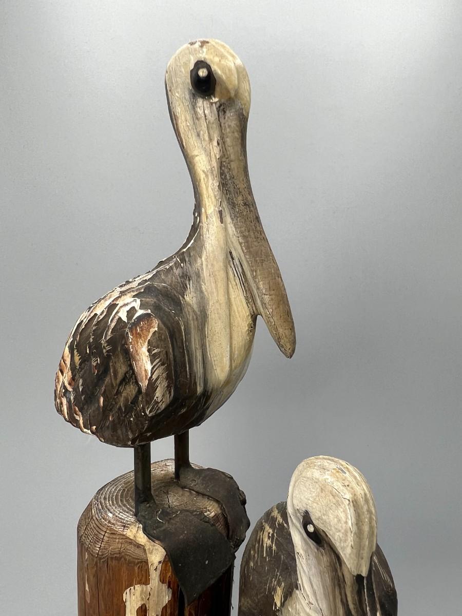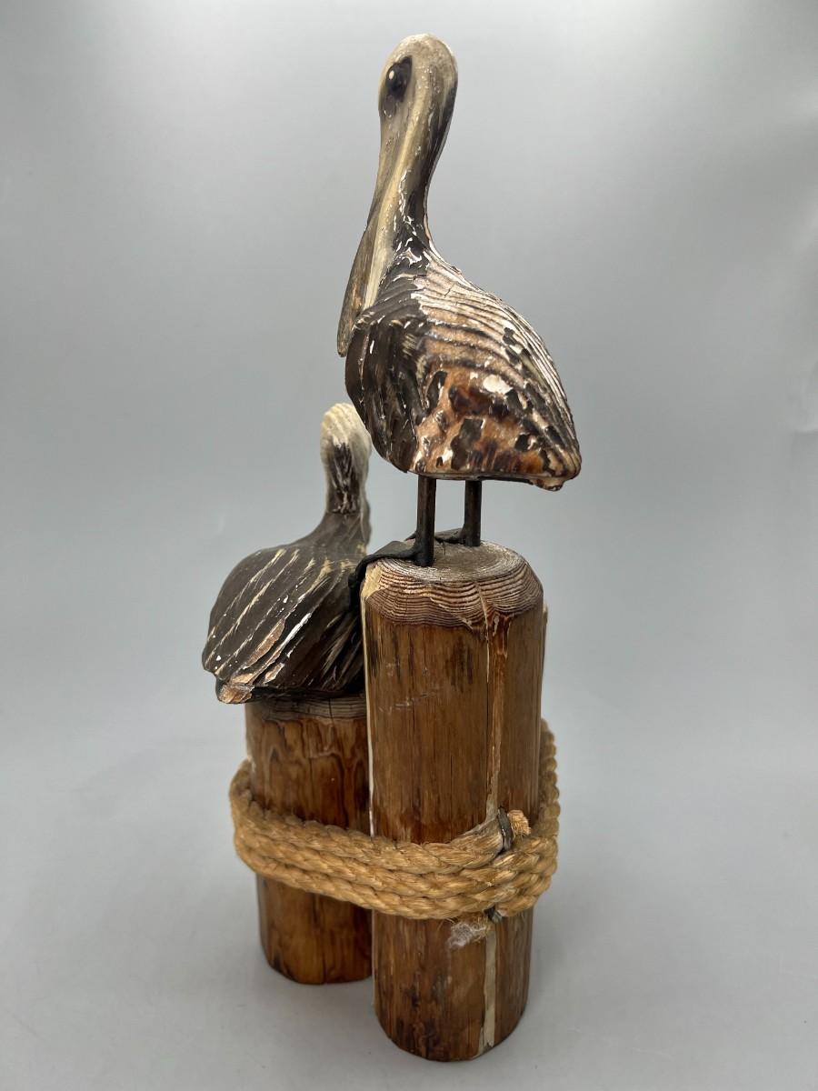 Nautical Wharf Boardwalk Wood Pelican Figurine Statue