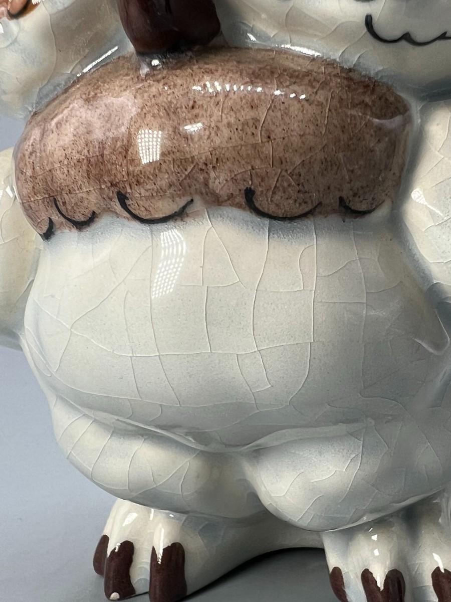 There is some crazing to the figurine, but there is no damage and in overall good collectible or displayable condition. Check pictures for more details and for sizing.