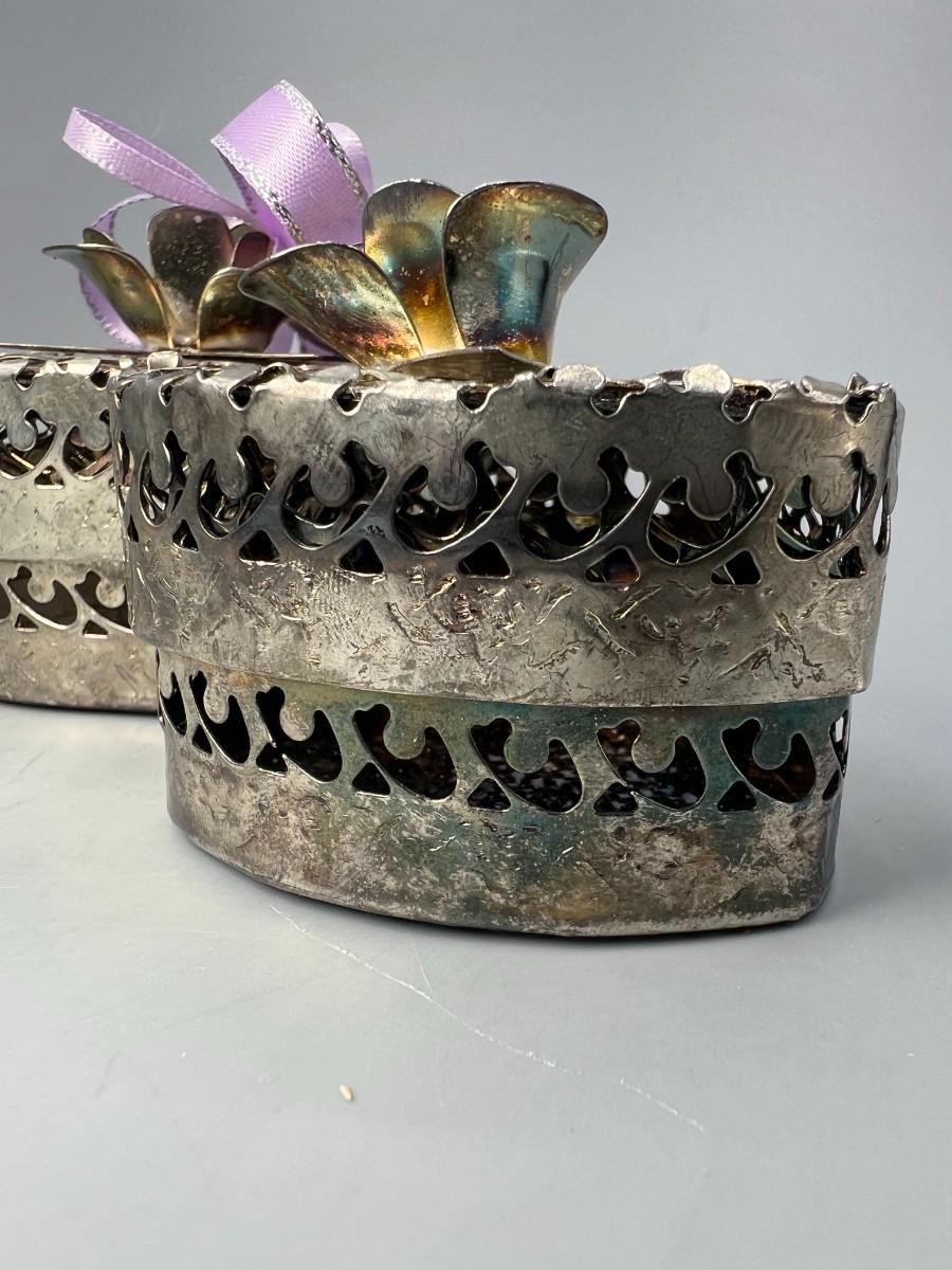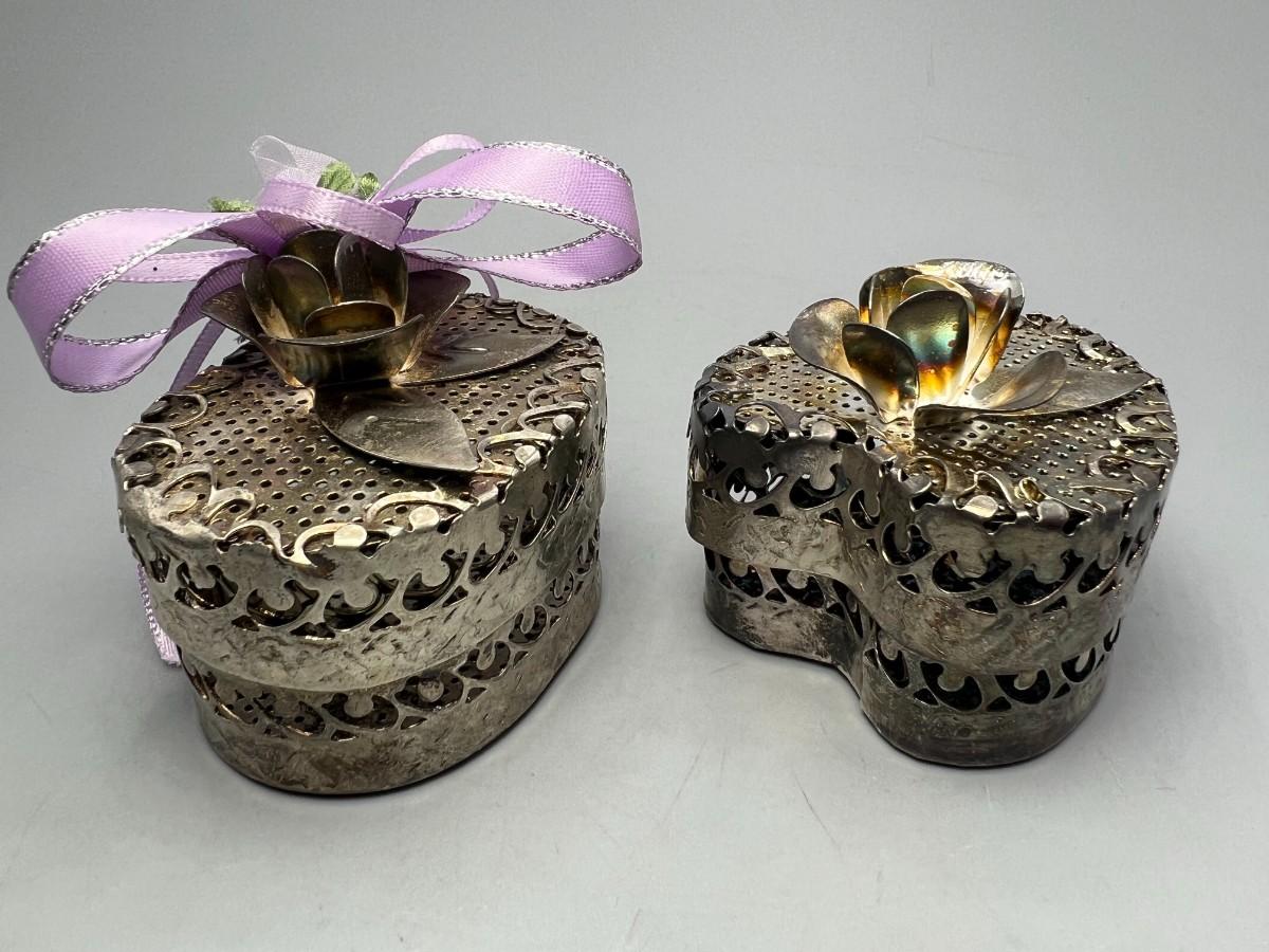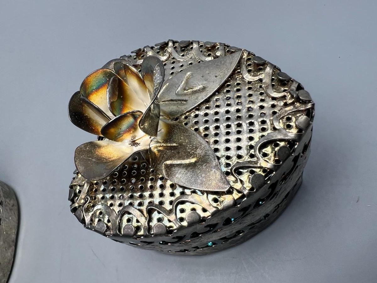 Pair of Metal Floral Vintage Trinket Snuff Jewelry Boxes