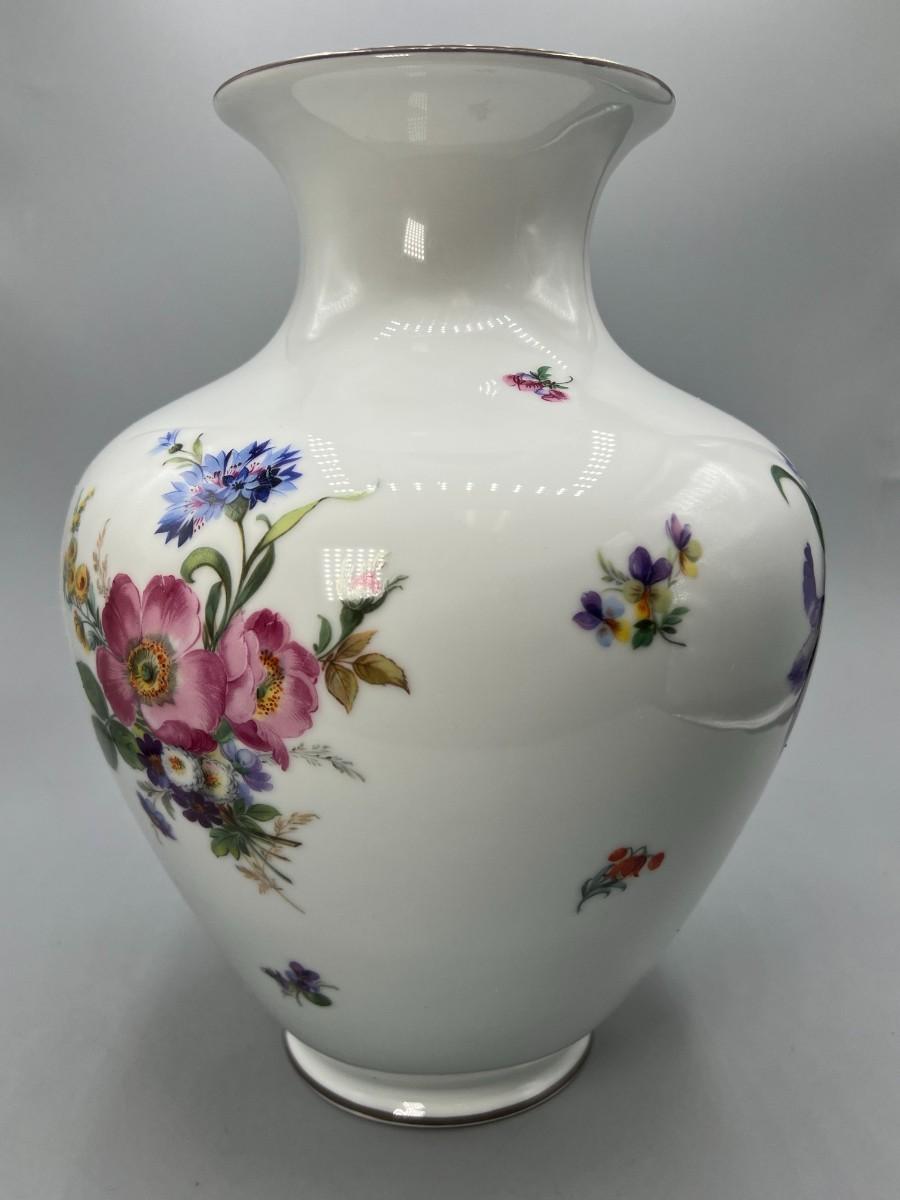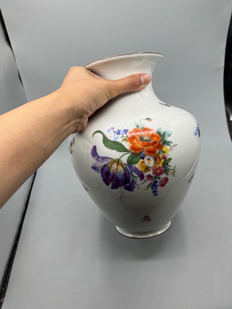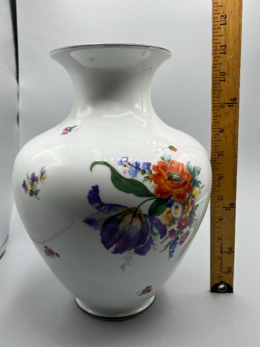 Vintage German Stamped Maker Colorful Flower Floral Ceramic Flower Vase