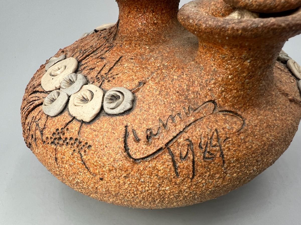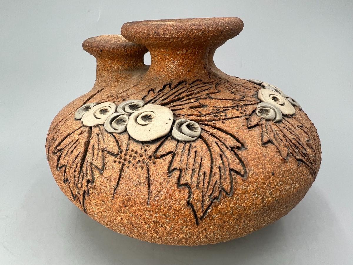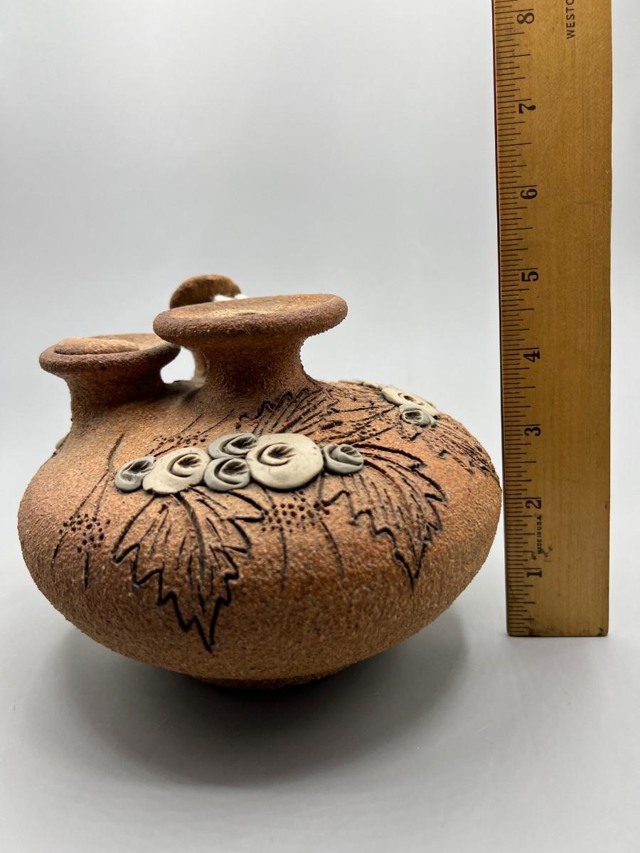 Vintage Carma Sand Art Pottery Vase Earthy Boho Floral