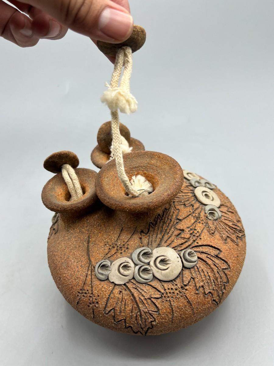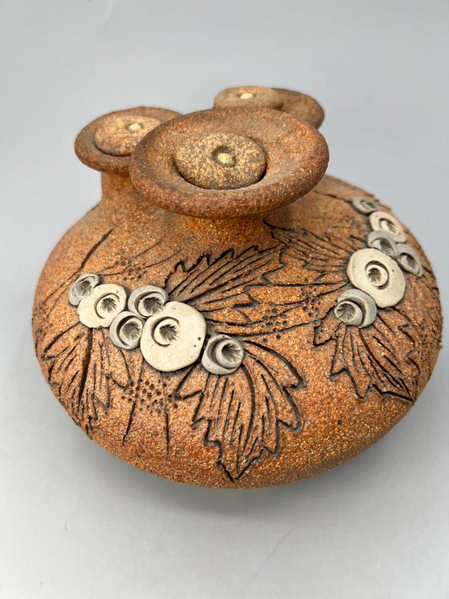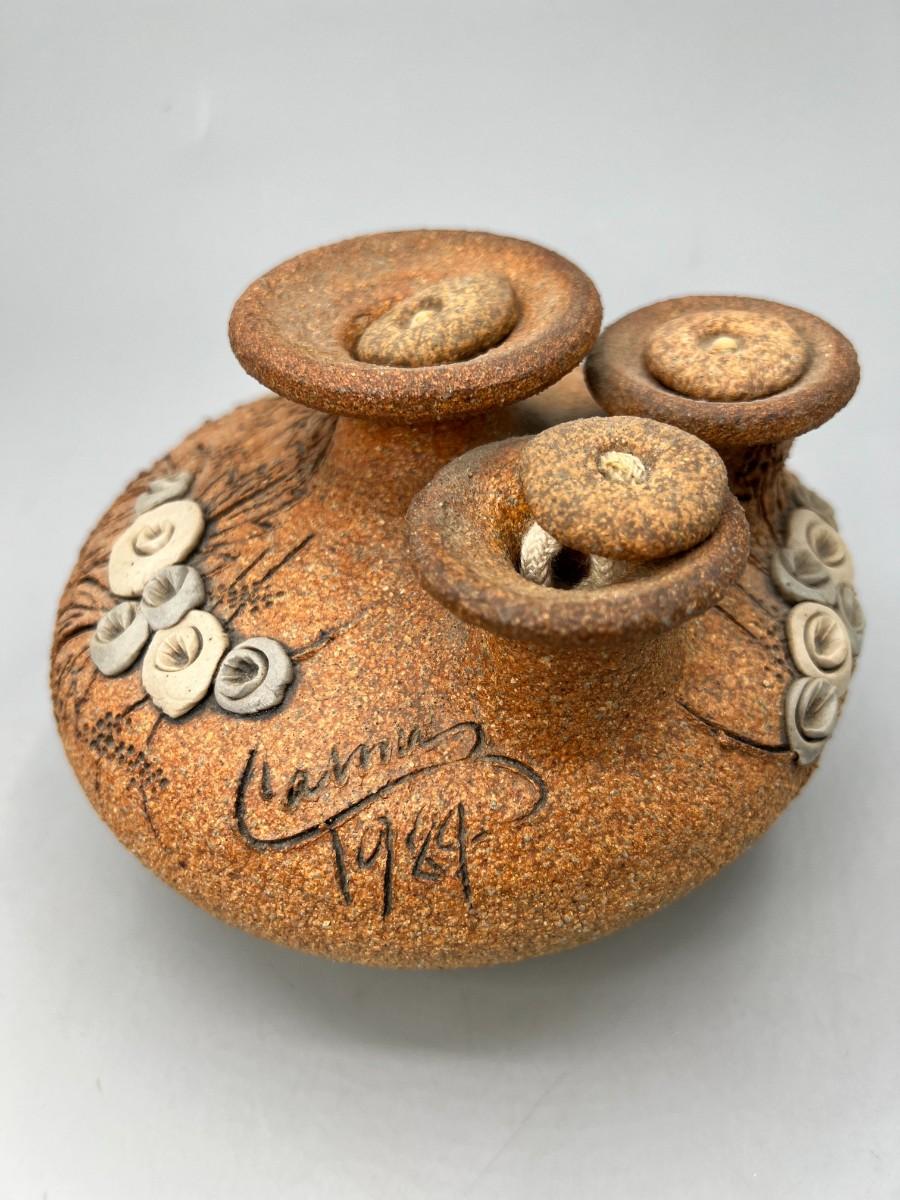 Vintage Carma Sand Art Pottery Vase Earthy Boho Floral