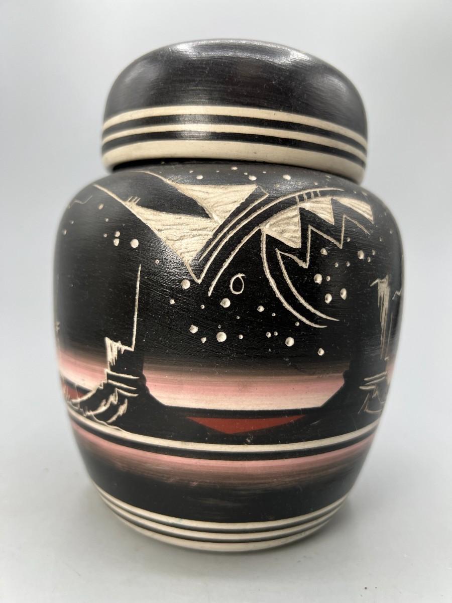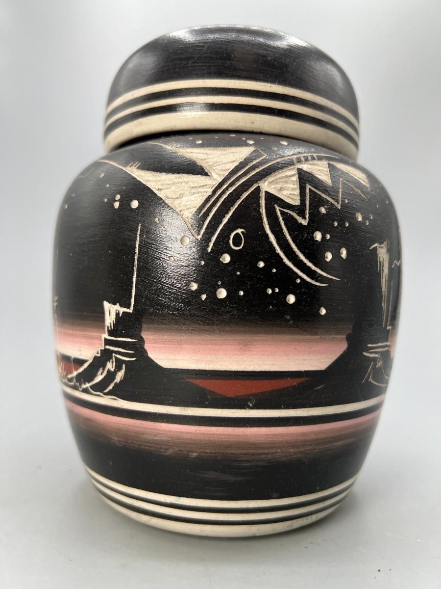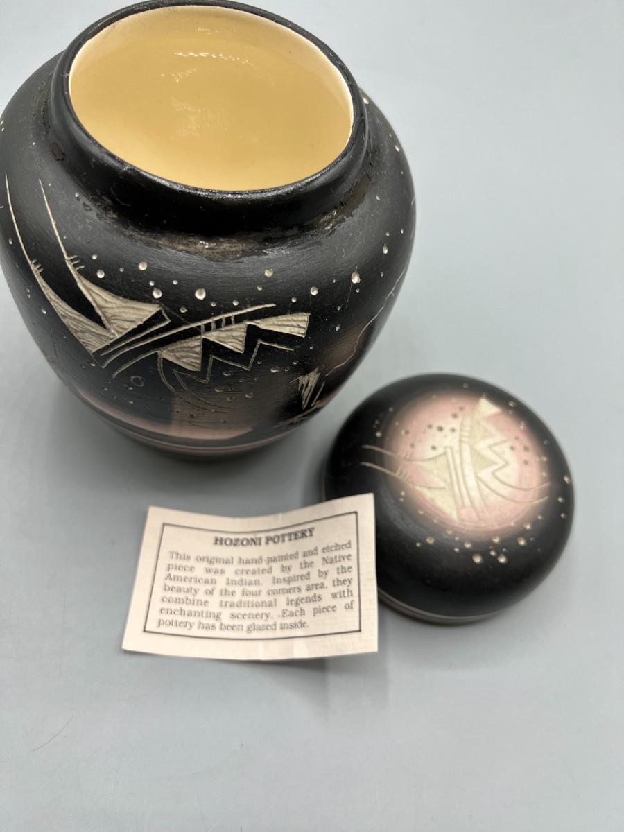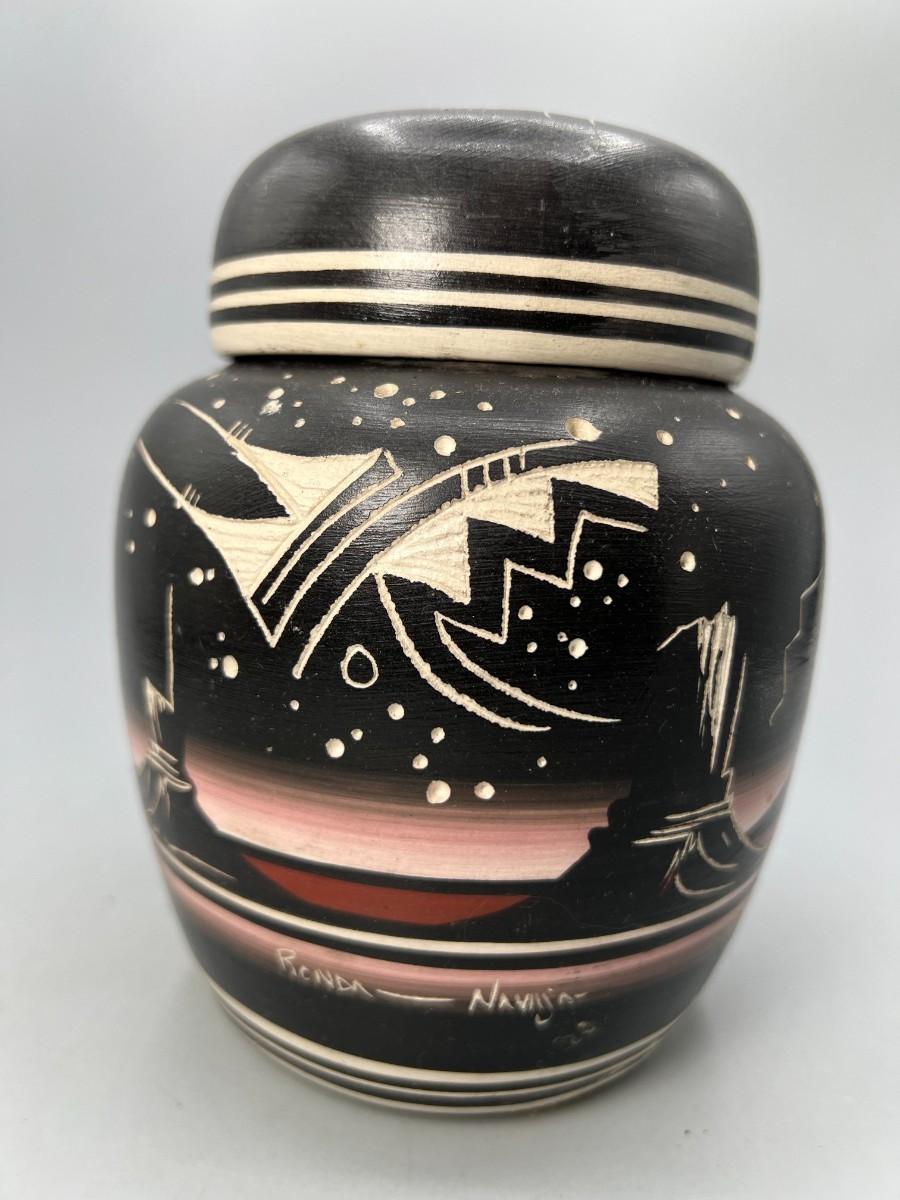 Original Hozoni Pottery Art Native American Ronda Navajo Ginger Jar Urn Style Lidded Vase