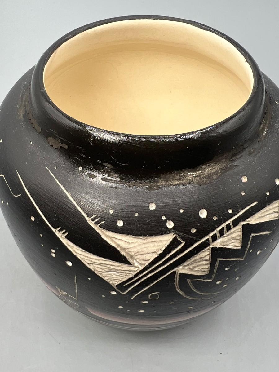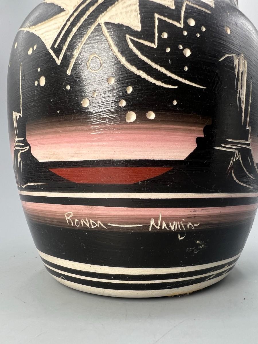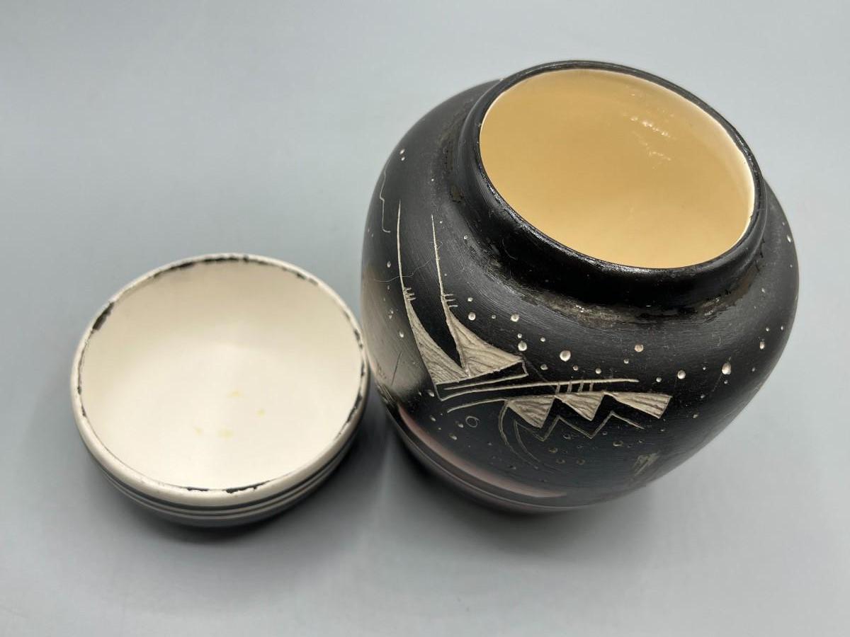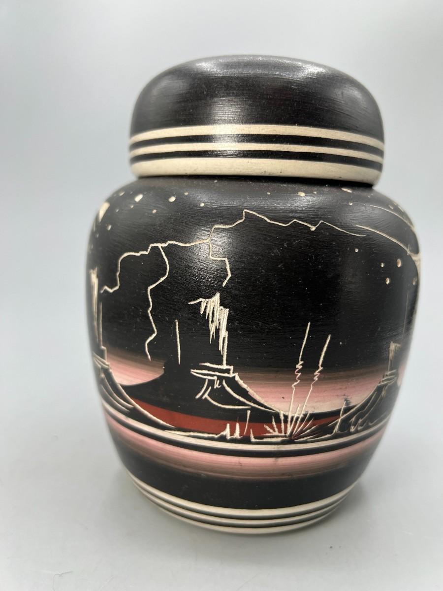 Original Hozoni Pottery Art Native American Ronda Navajo Ginger Jar Urn Style Lidded Vase