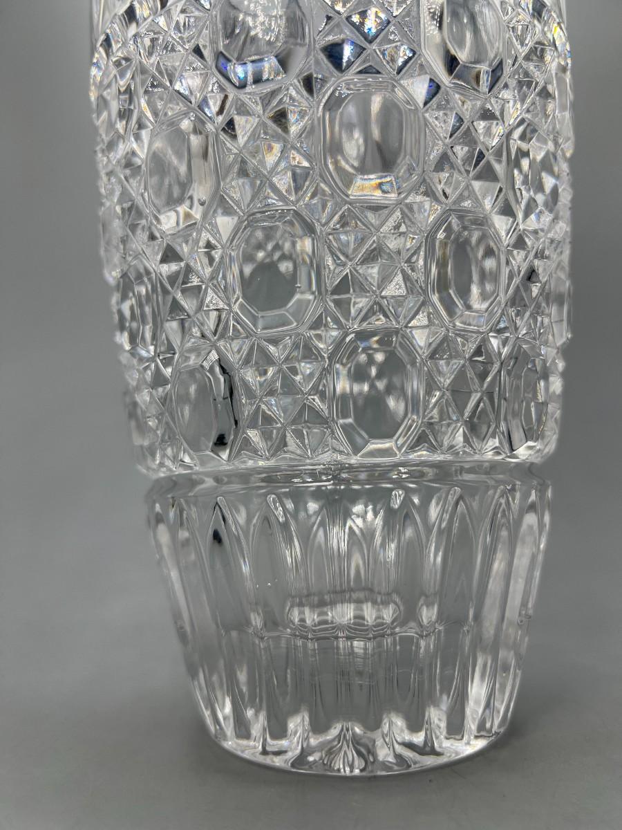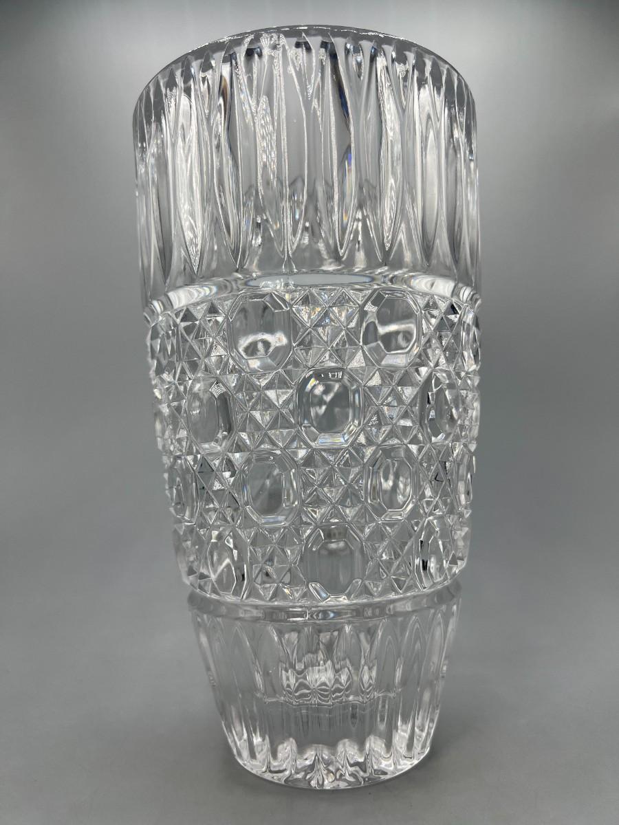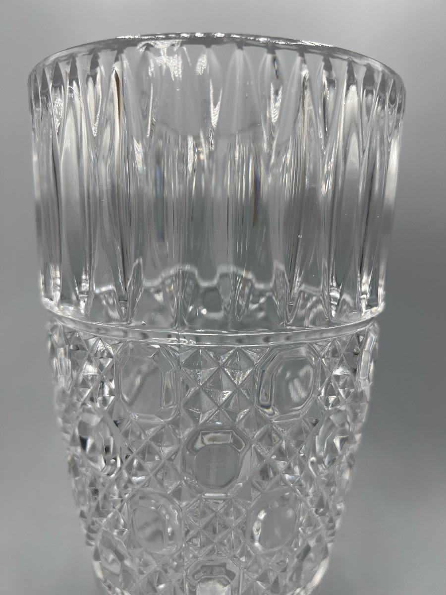 Vintage Slim Crystal Glass Vase Multiple Pattern Mid Century Modern Flower Vase