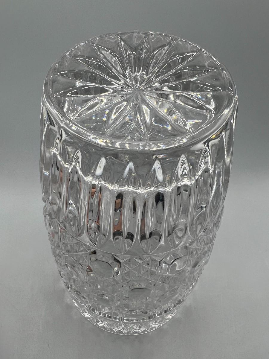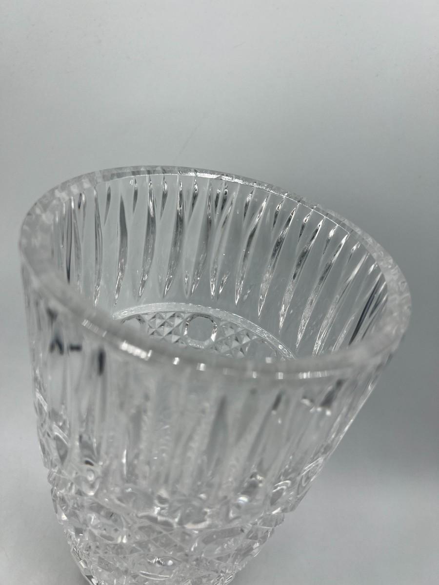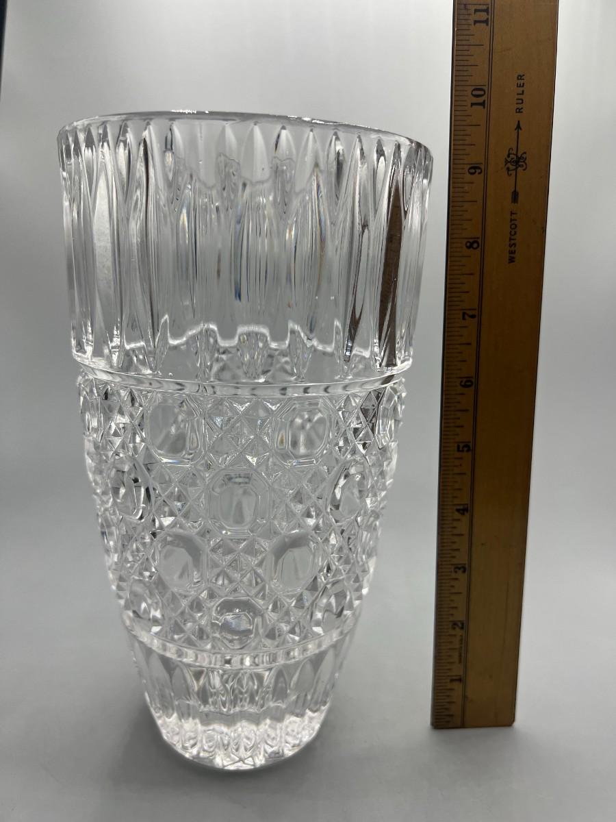 Vintage Slim Crystal Glass Vase Multiple Pattern Mid Century Modern Flower Vase