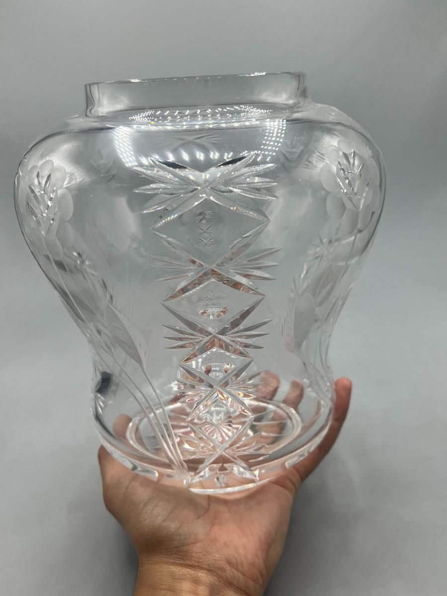 Vintage Flower Pattern Cut Crystal Urn Style Vase