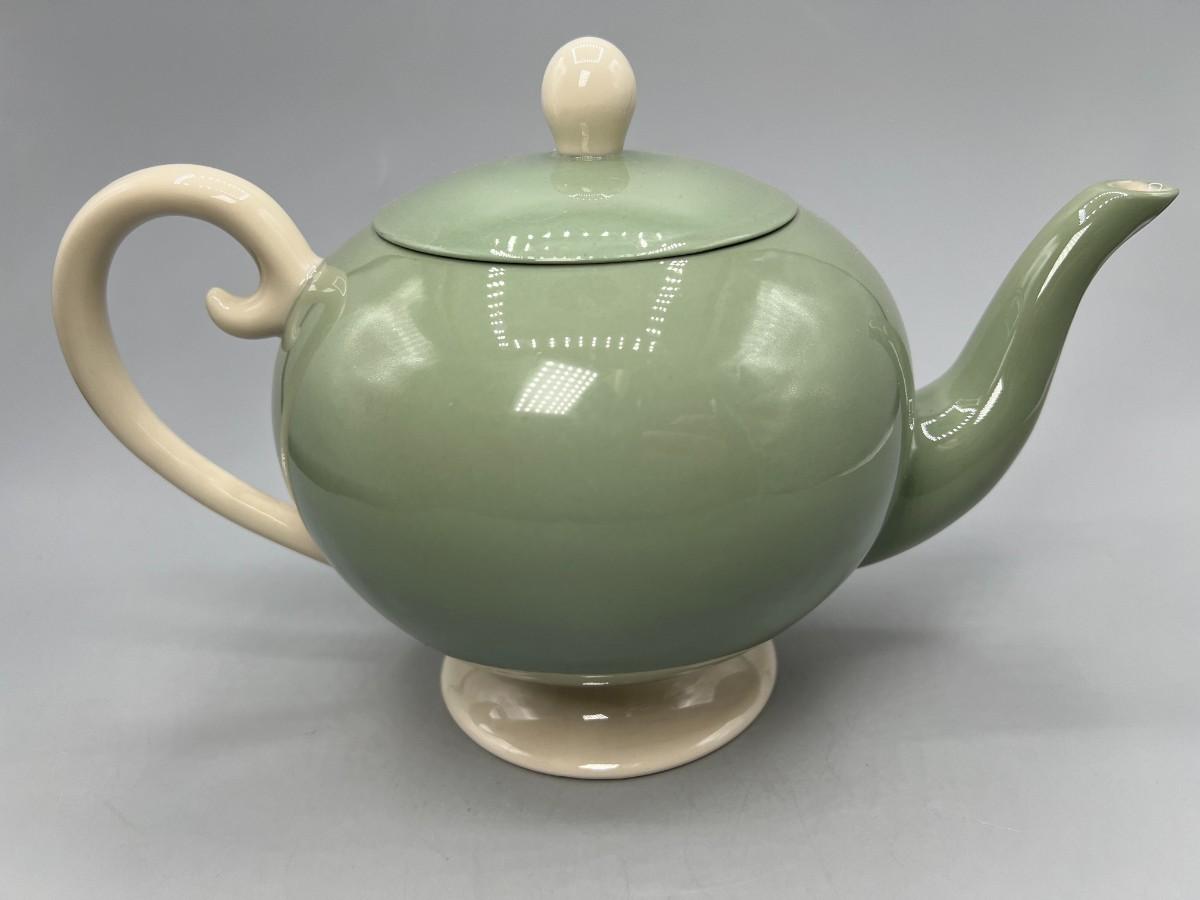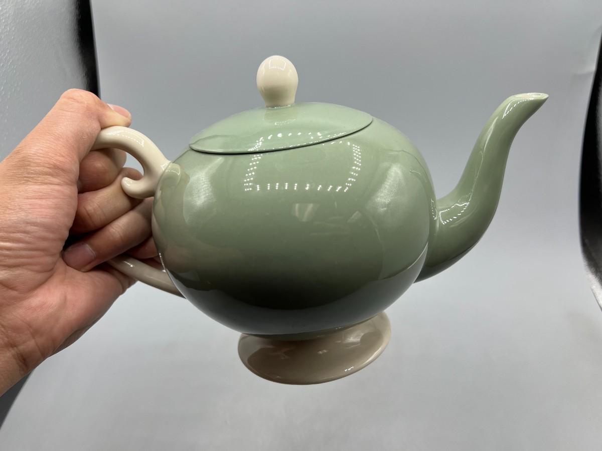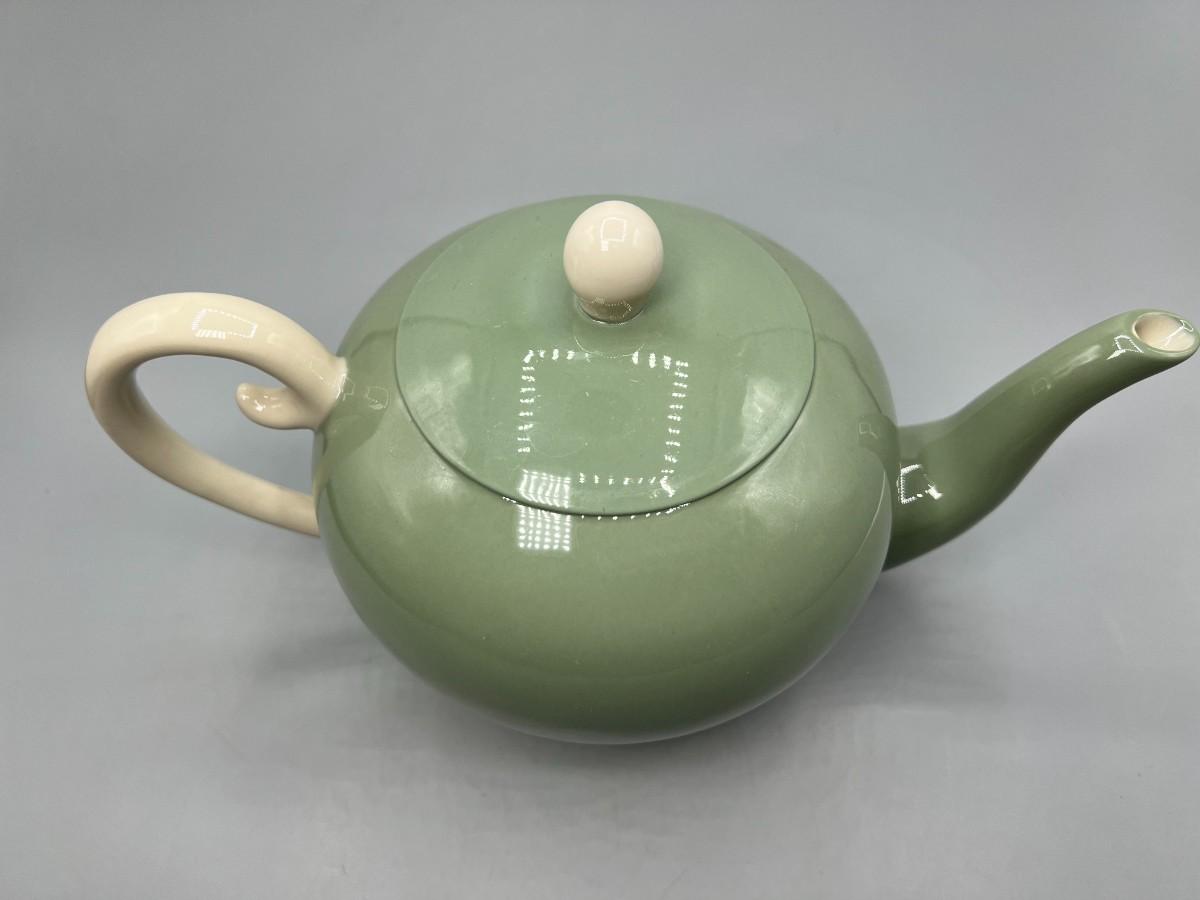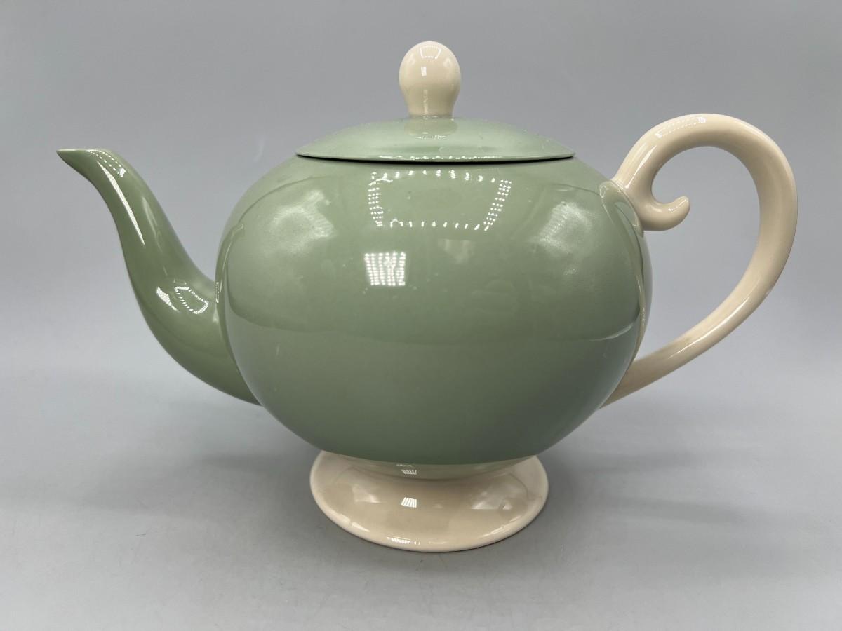 Simple Rustic Green Cottagecore Style Unmarked Ceramic Tea Pot