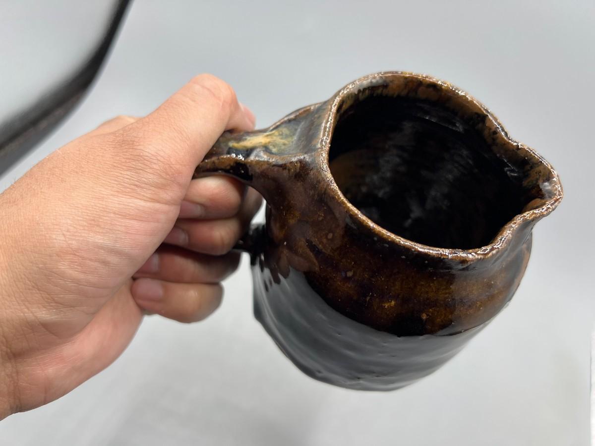 There is no damage to the mug and is in good condition. There are imperfections in the shape, but it is still an interesting and useable piece!
