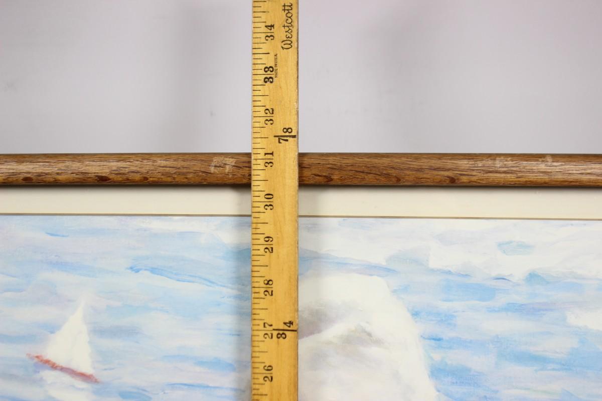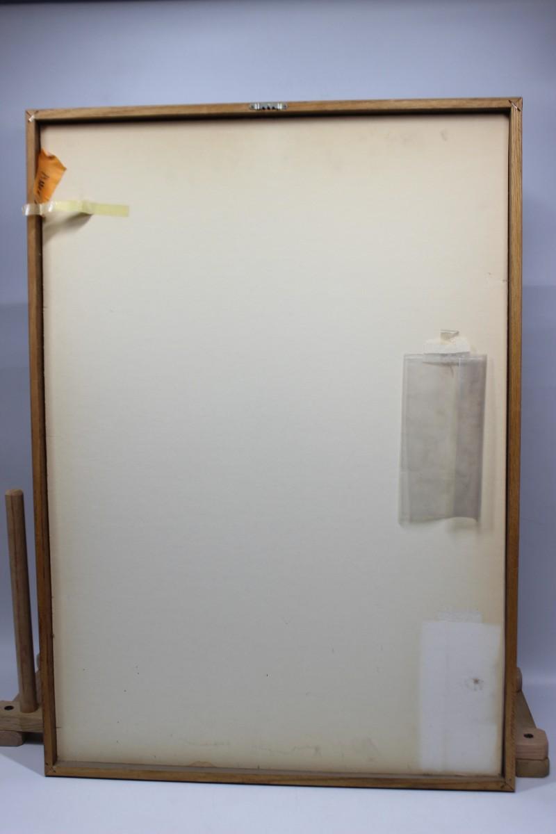 The glass is loose from the frame and is in overall fair condition. The art is in good condition and can be transferred to a different frame.