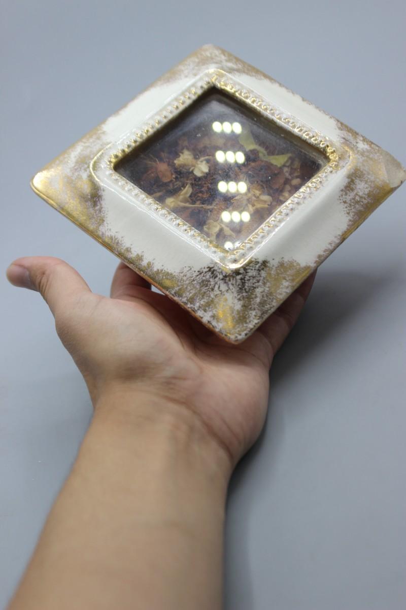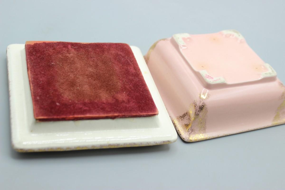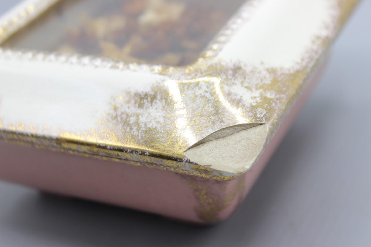 Vintage Mid Century Real Encased Organic Flower Foliage Ceramic Jewelry Box